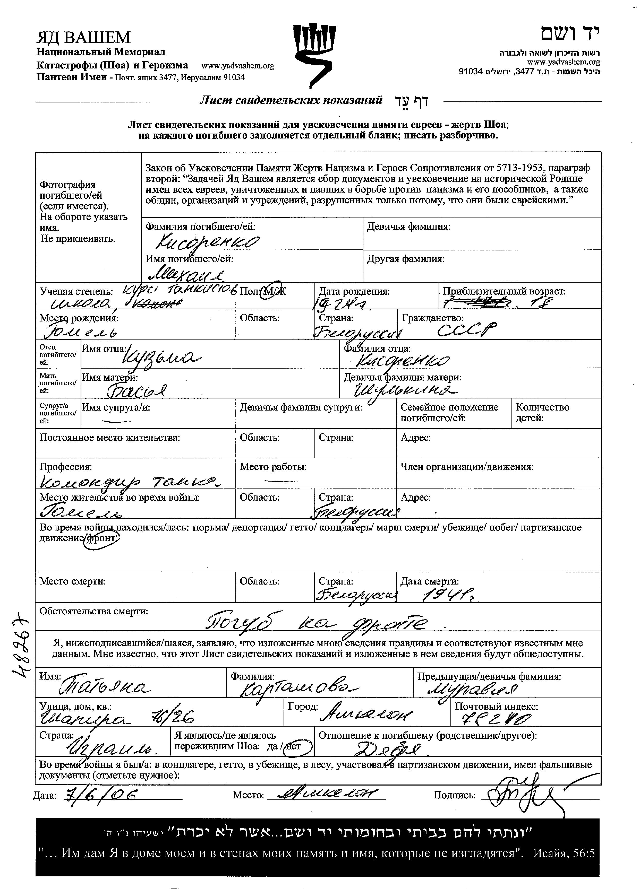 Kisorenko Mikhail 1924 Gomel, Weißrussland (UdSSR) Gedenkblatt