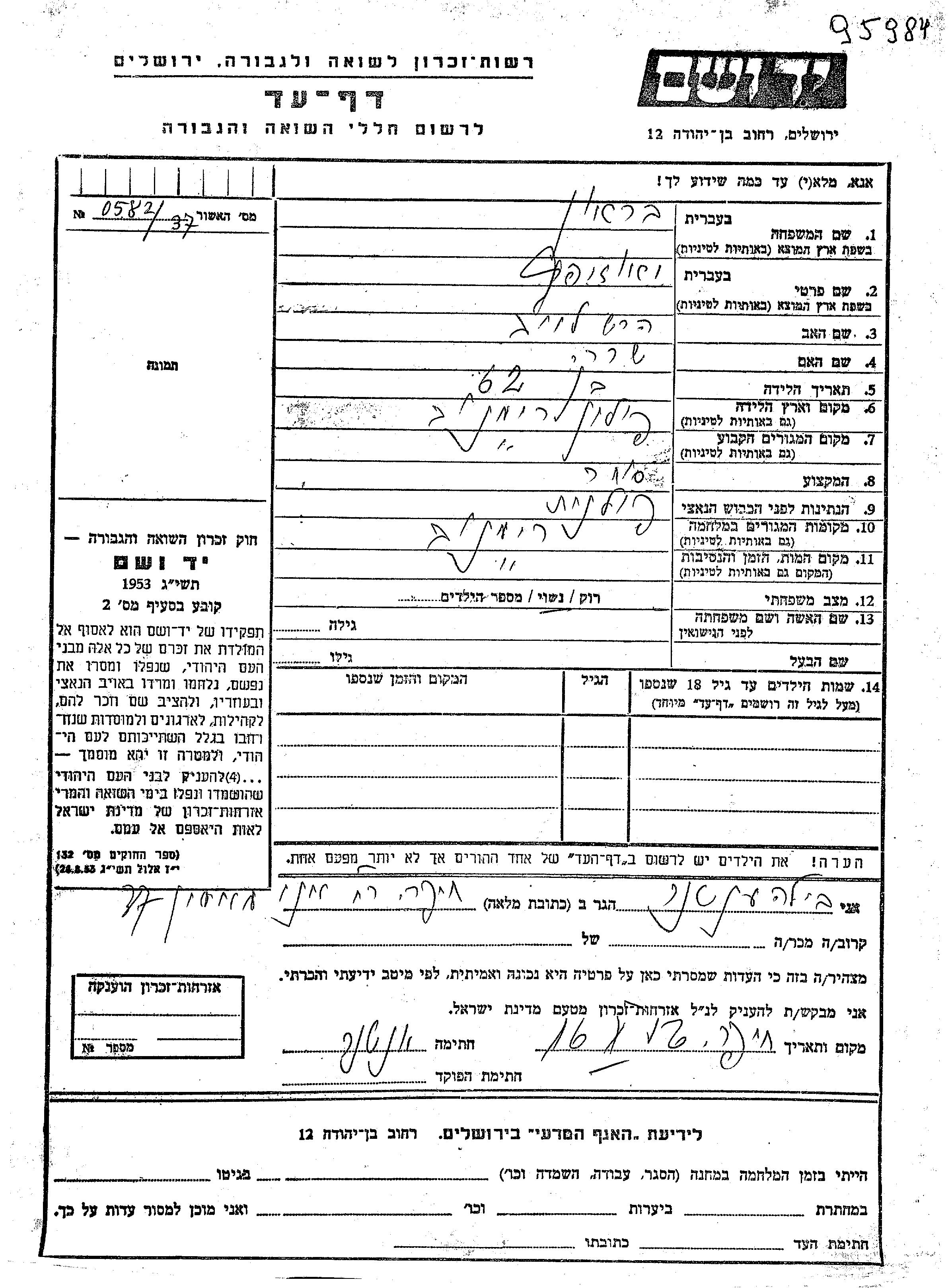 Iozef wurde in der Schoah ermordet. Todesort: Rymanow, Polen.
