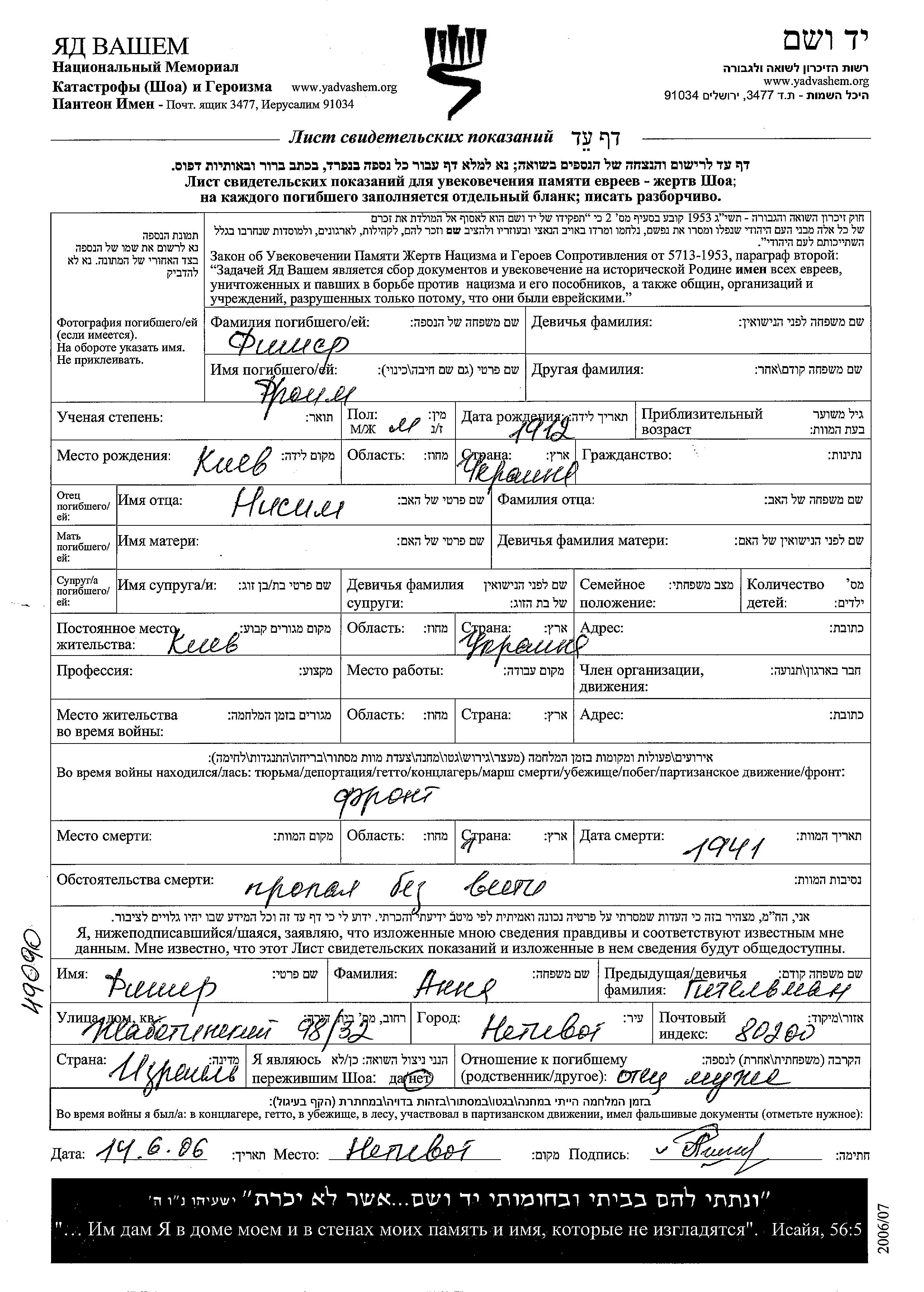 Fisher Froim 1912 Kiev, Ukraine (UdSSR) Gedenkblatt