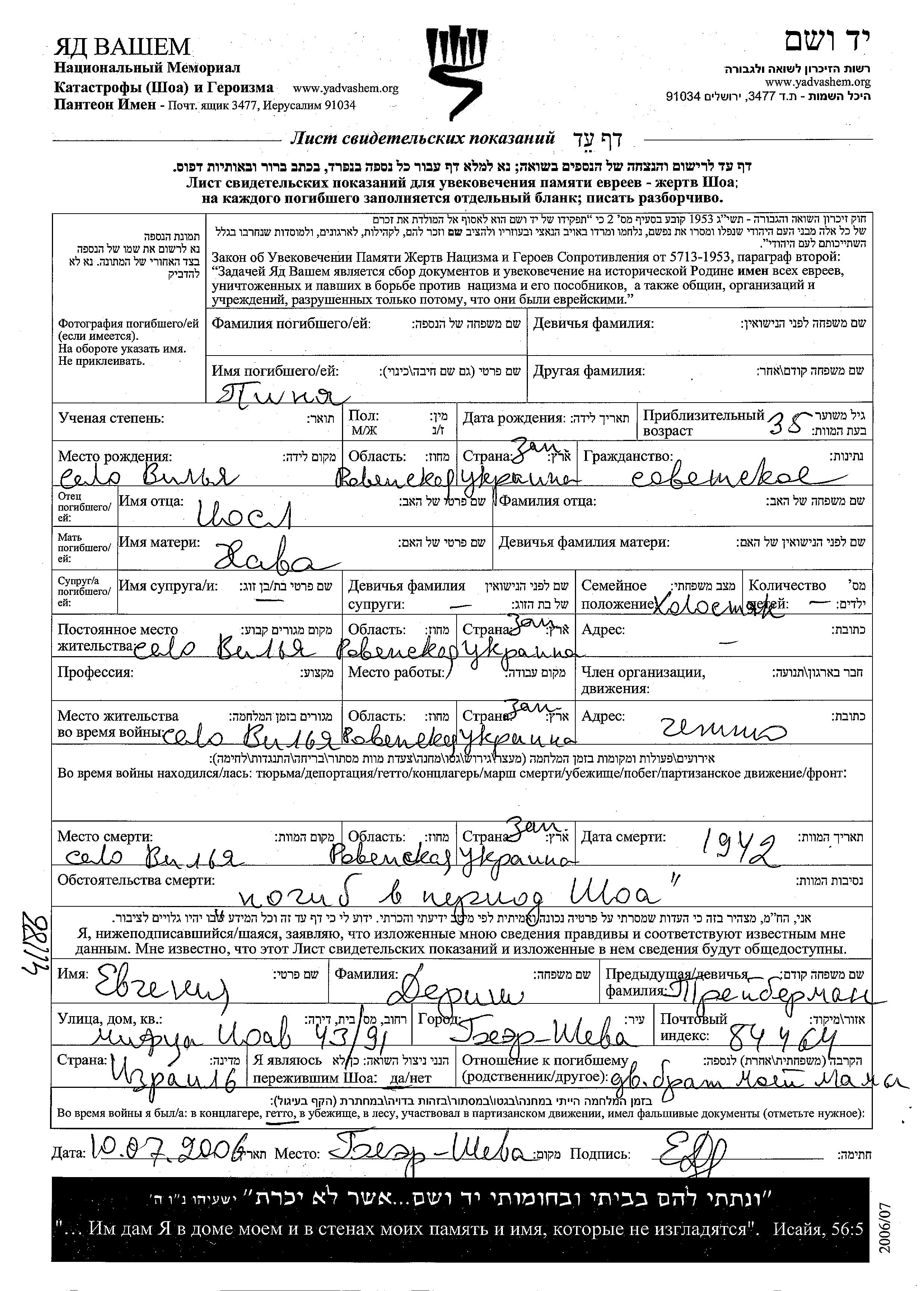 Pinya wurde in der Schoah ermordet. Todesort: Wilja, Polen im Jahr 1942.