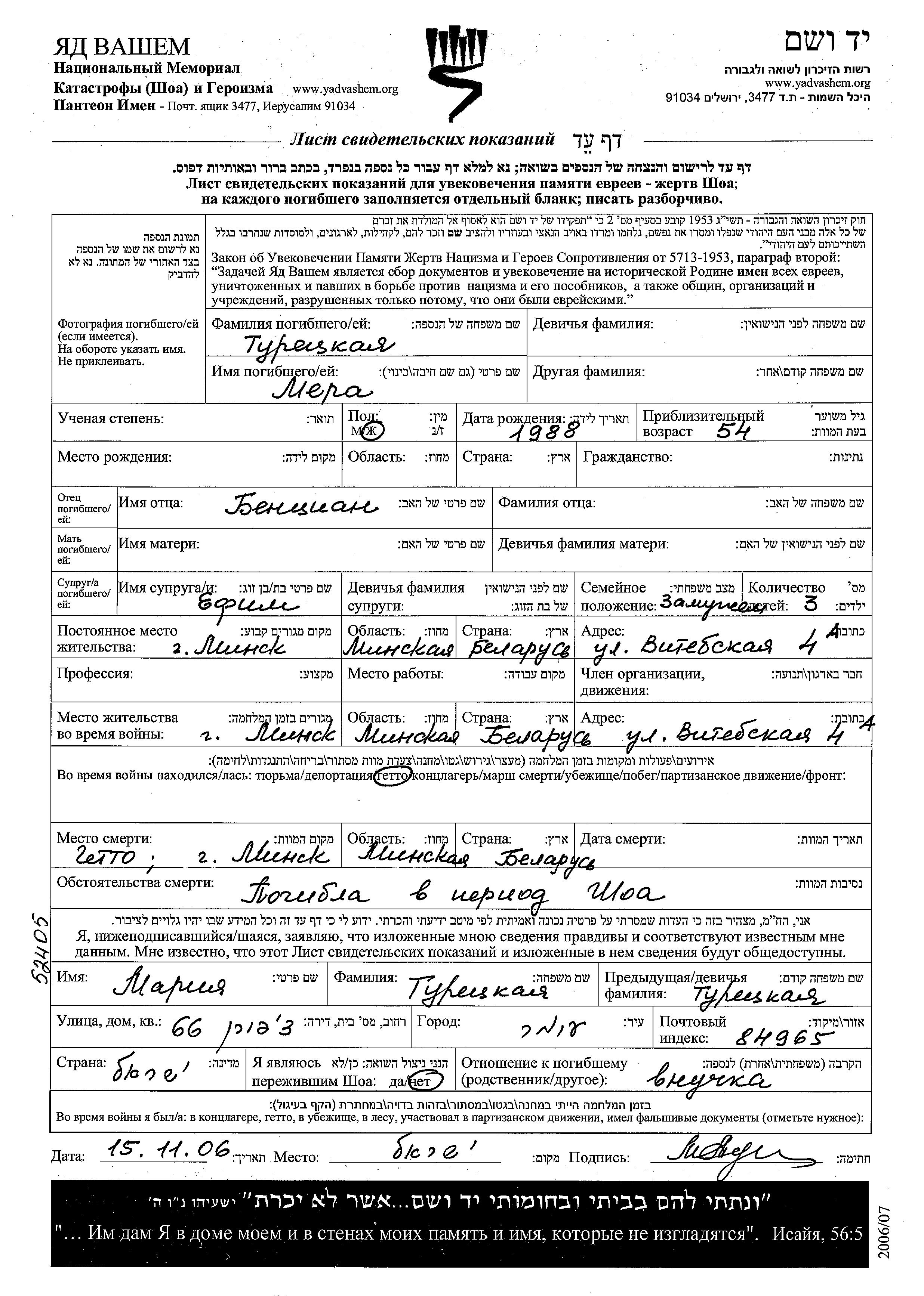 Mera wurde in der Schoah ermordet. Todesort: Minsk, Weißrussland (UdSSR).