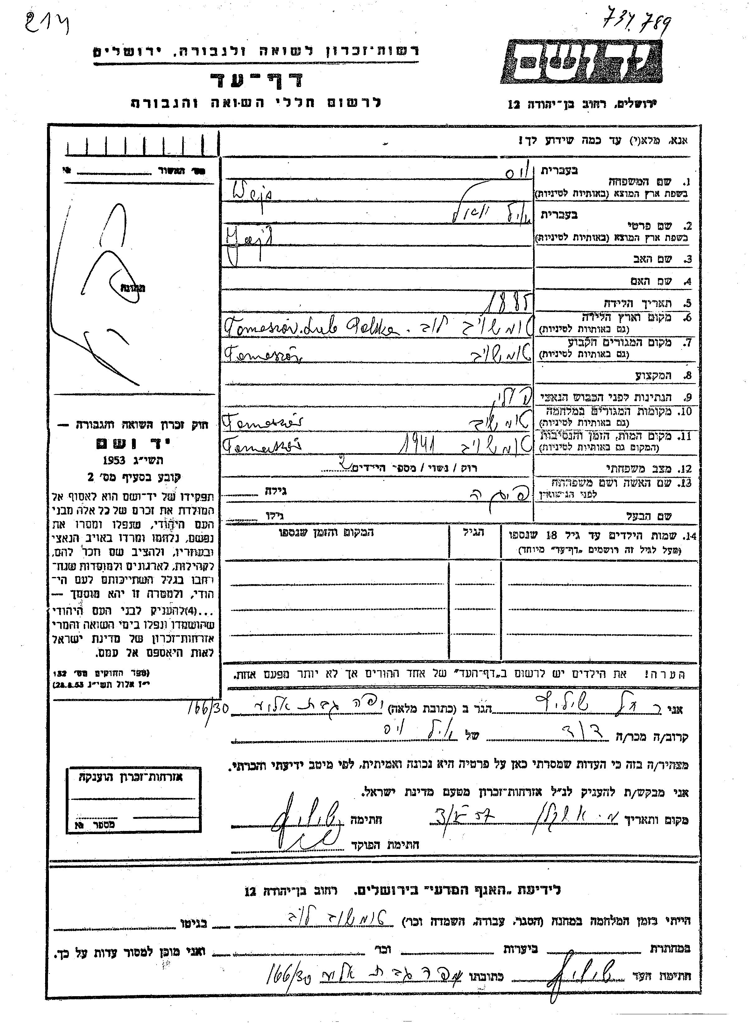 Jojil wurde in der Schoah ermordet. Todesort: Tomaszow, Polen im Jahr 1941.