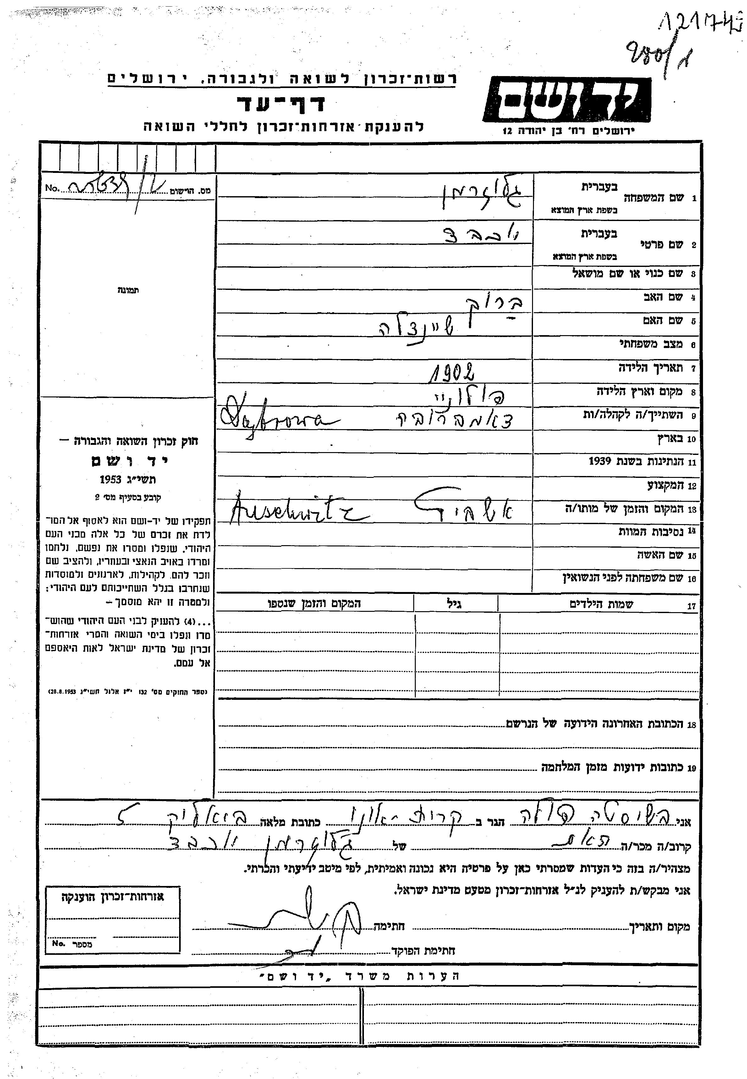 Yokheved wurde in der Schoah ermordet. Todesort: Auschwitz, Polen.