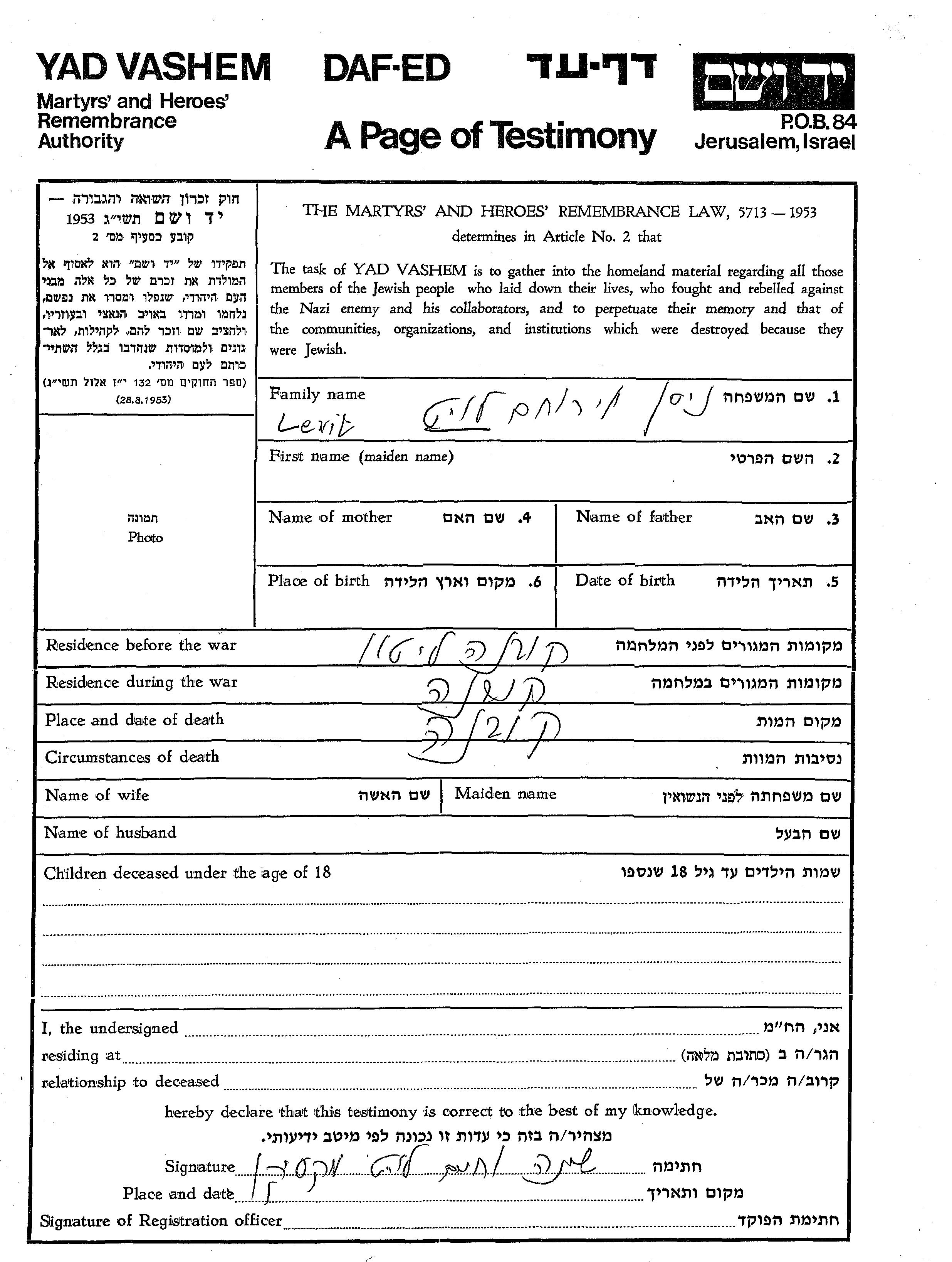 Nisan Yerukham Levit. Vor dem Zweiten Weltkrieg lebte er in Kaunas, Litauen. Während des Krieges war er in Kaunas, Litauen.