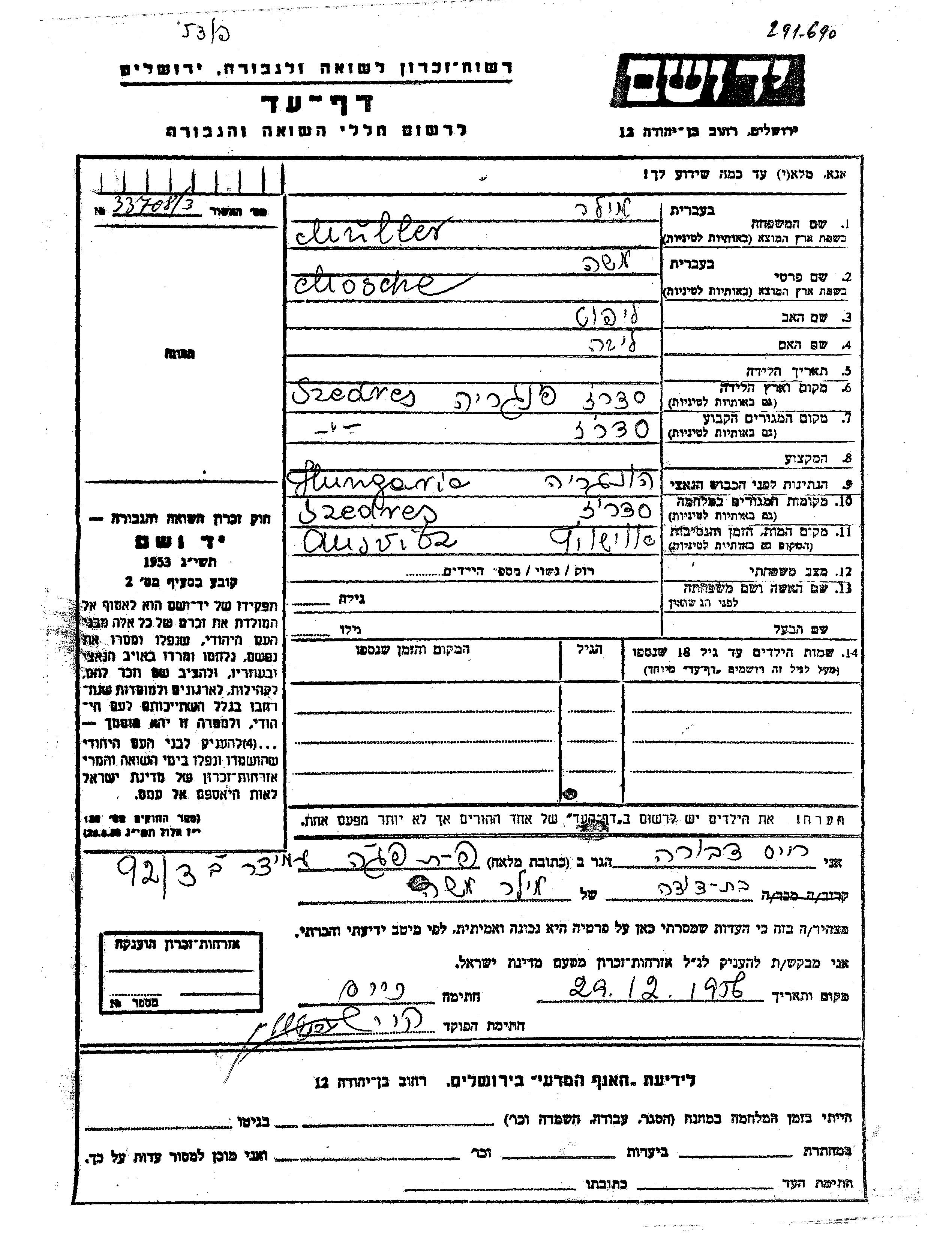 Miller Mosche Szedres, Ungarn Gedenkblatt