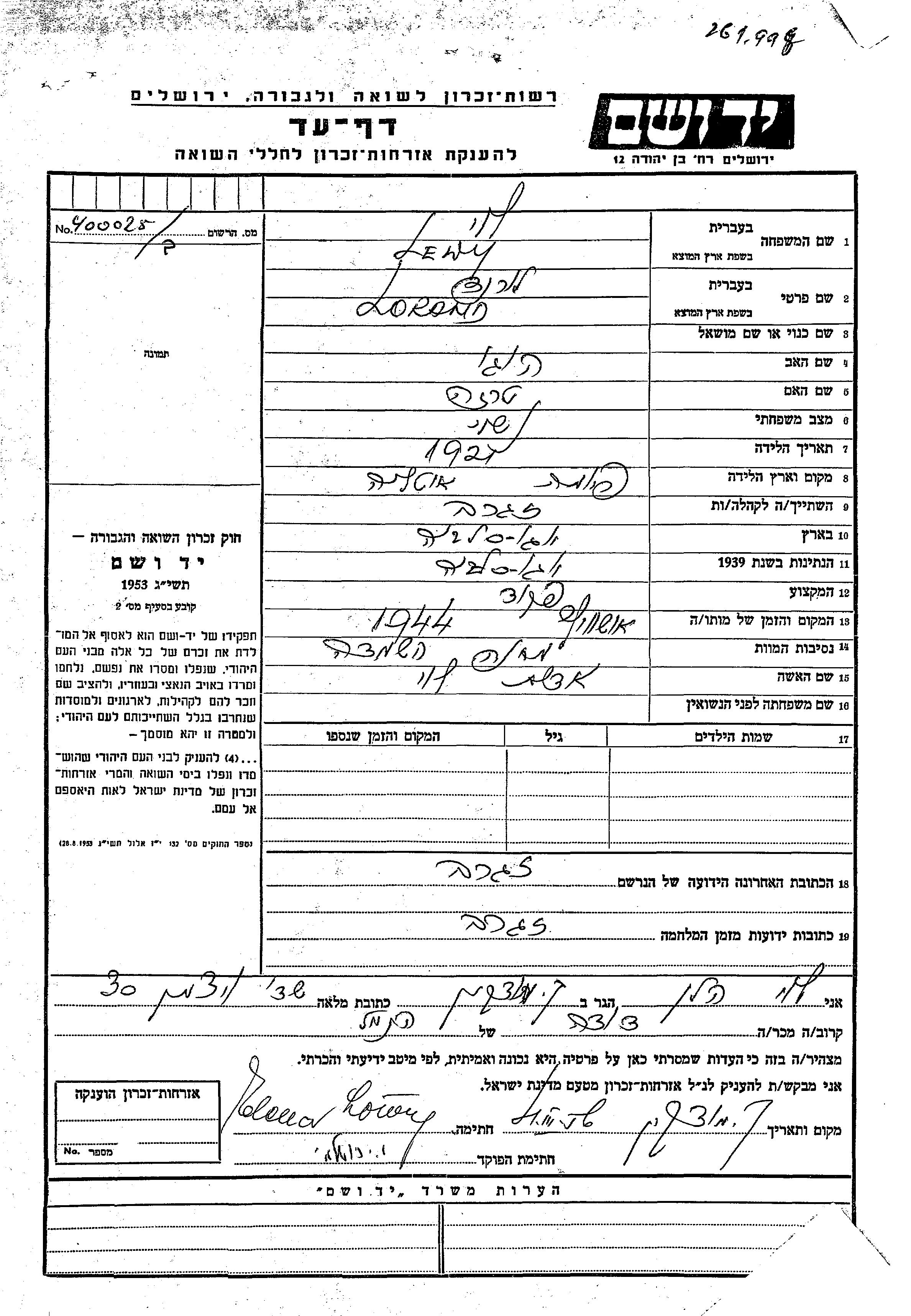 Lorand wurde in der Schoah ermordet. Todesort: Auschwitz, Polen im Jahr 1944.