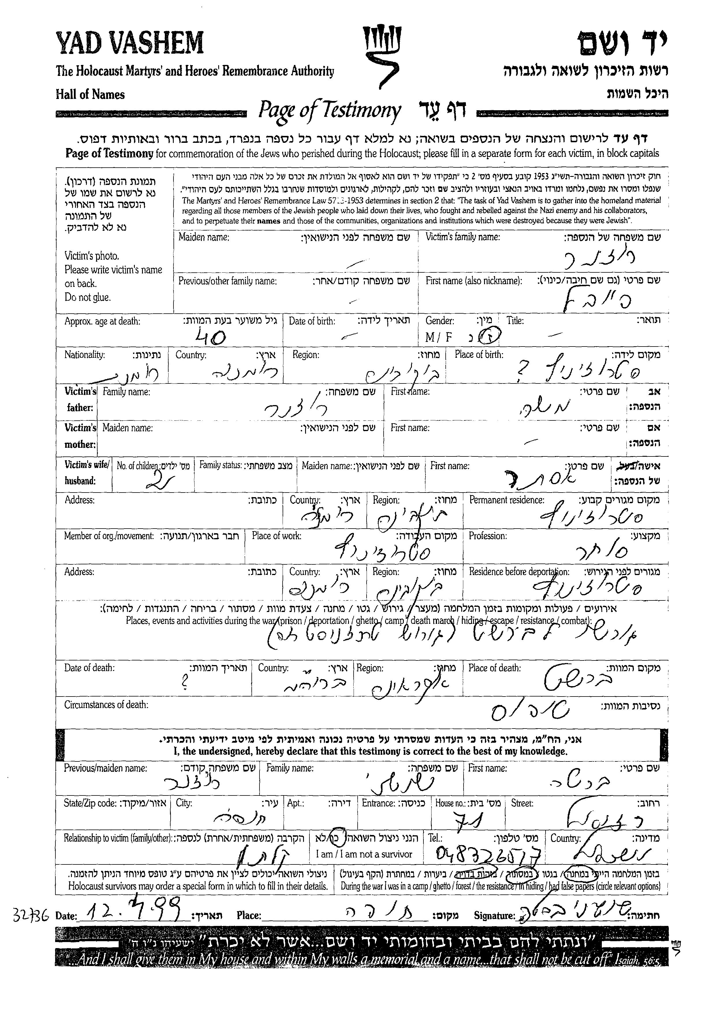 Faivel wurde in der Schoah ermordet. Todesort: Bershad, Ukraine (UdSSR).