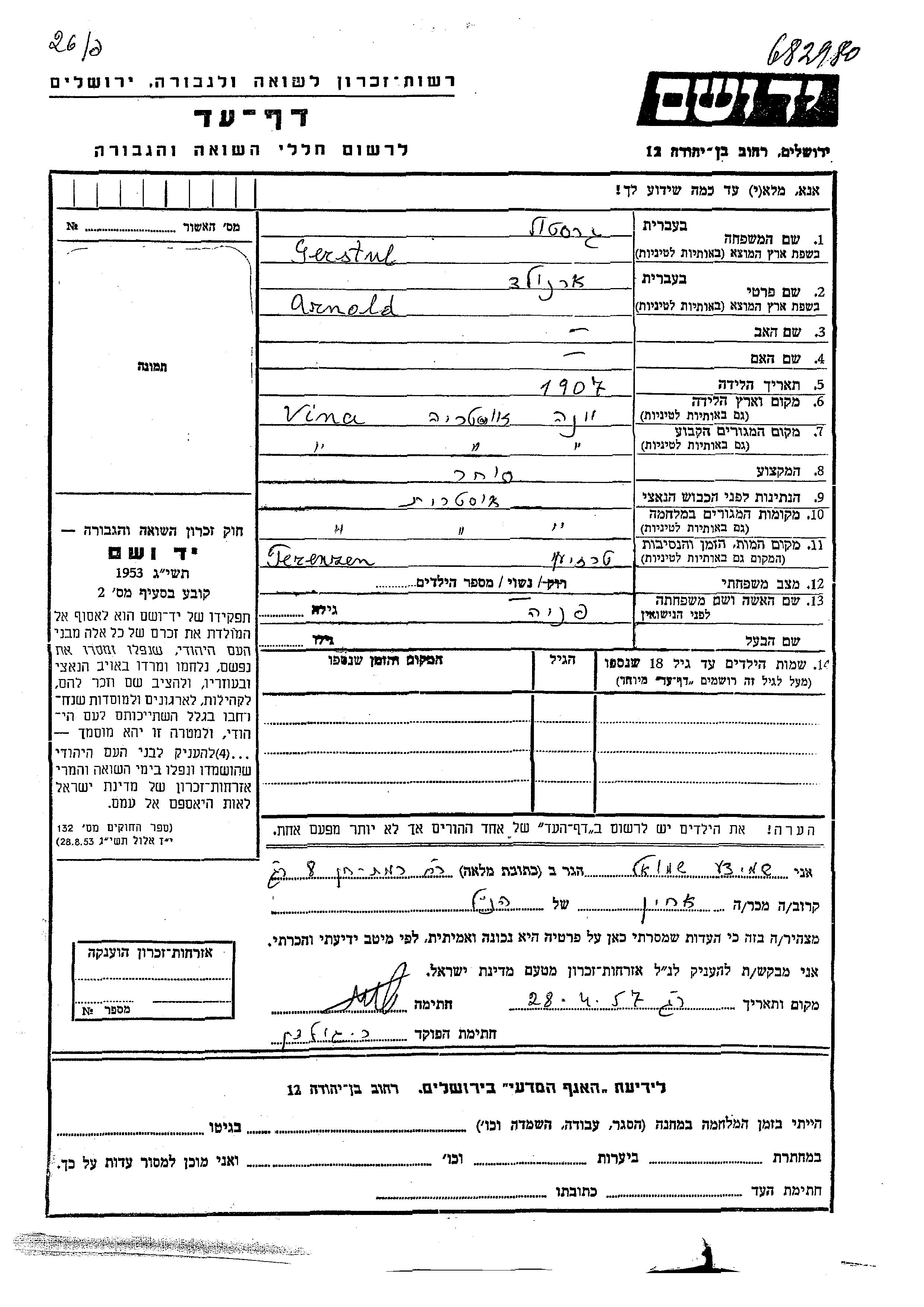Arnold wurde in der Schoah ermordet. Todesort: Theresienstadt, Tschechoslowakei.