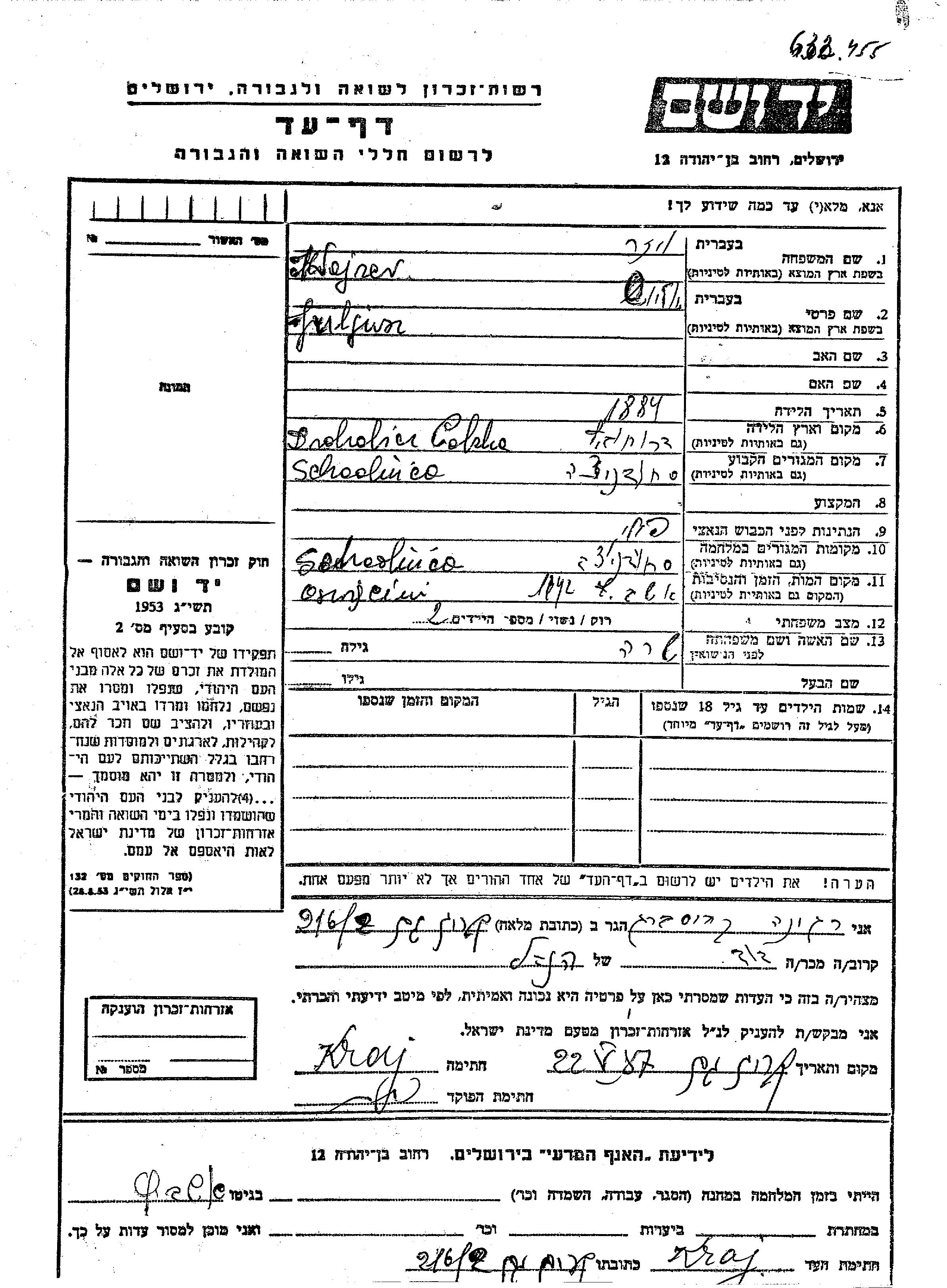 Juljusz Wejzer wurde im Jahr 1884 in Drohobiez, Polen geboren. Er war mit Sara Verheiratet. Vor dem Zweiten Weltkrieg lebte er in Schodnica, Polen. Während des Krieges war er in Schodnica, Polen.