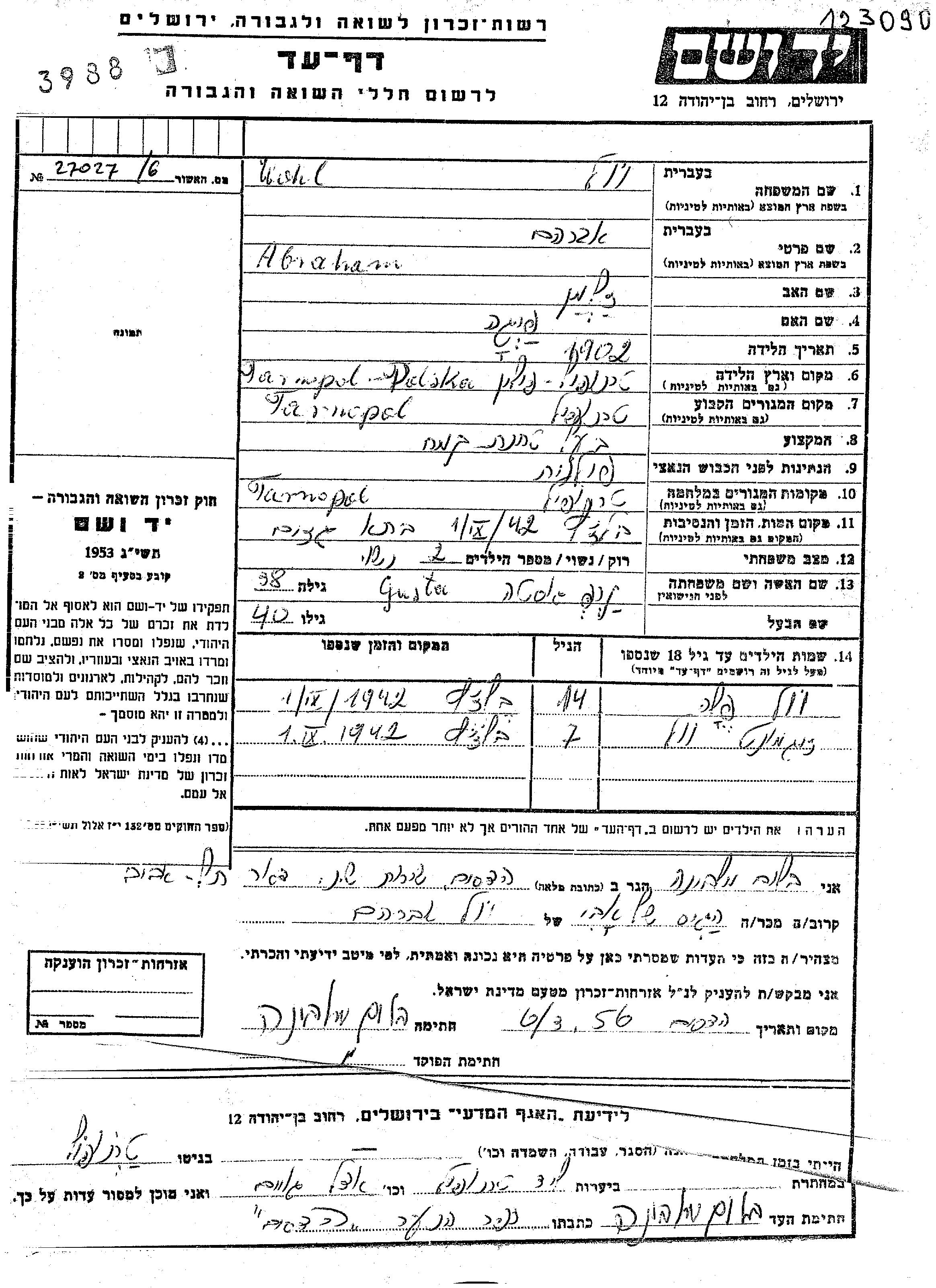 Abraham wurde in der Schoah ermordet. Todesort: Belzec, Polen im Jahr 01/09/1942.