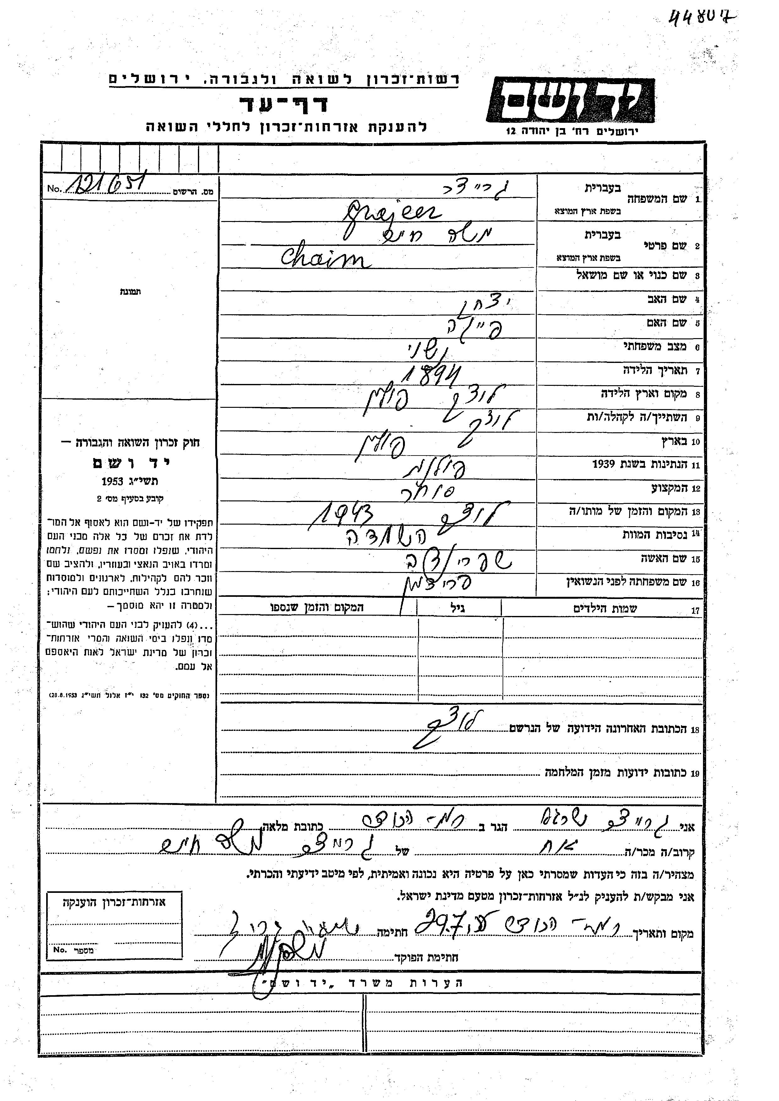 Suche nach einem Todesjahr im Zeitraum der Holocaust: 1933 bis 1945. Bitte wählen Sie 'Exakt' im Auswahlmenü, um nur nach einem einzelnen Jahr zu suchen, alternativ können Sie die flexibleren Optionen '+/- 2 Jahre' oder '+/- 5 Jahre' wählen.