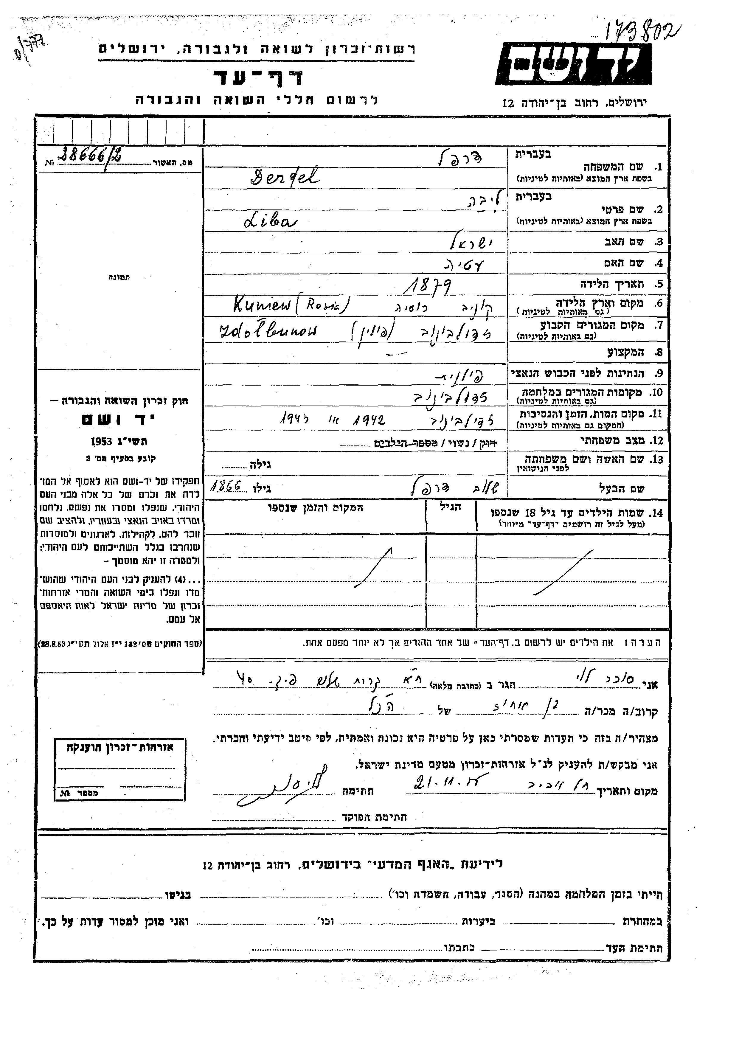 Liba wurde in der Schoah ermordet. Todesort: Zdolbunow, Polen im Jahr 1942.