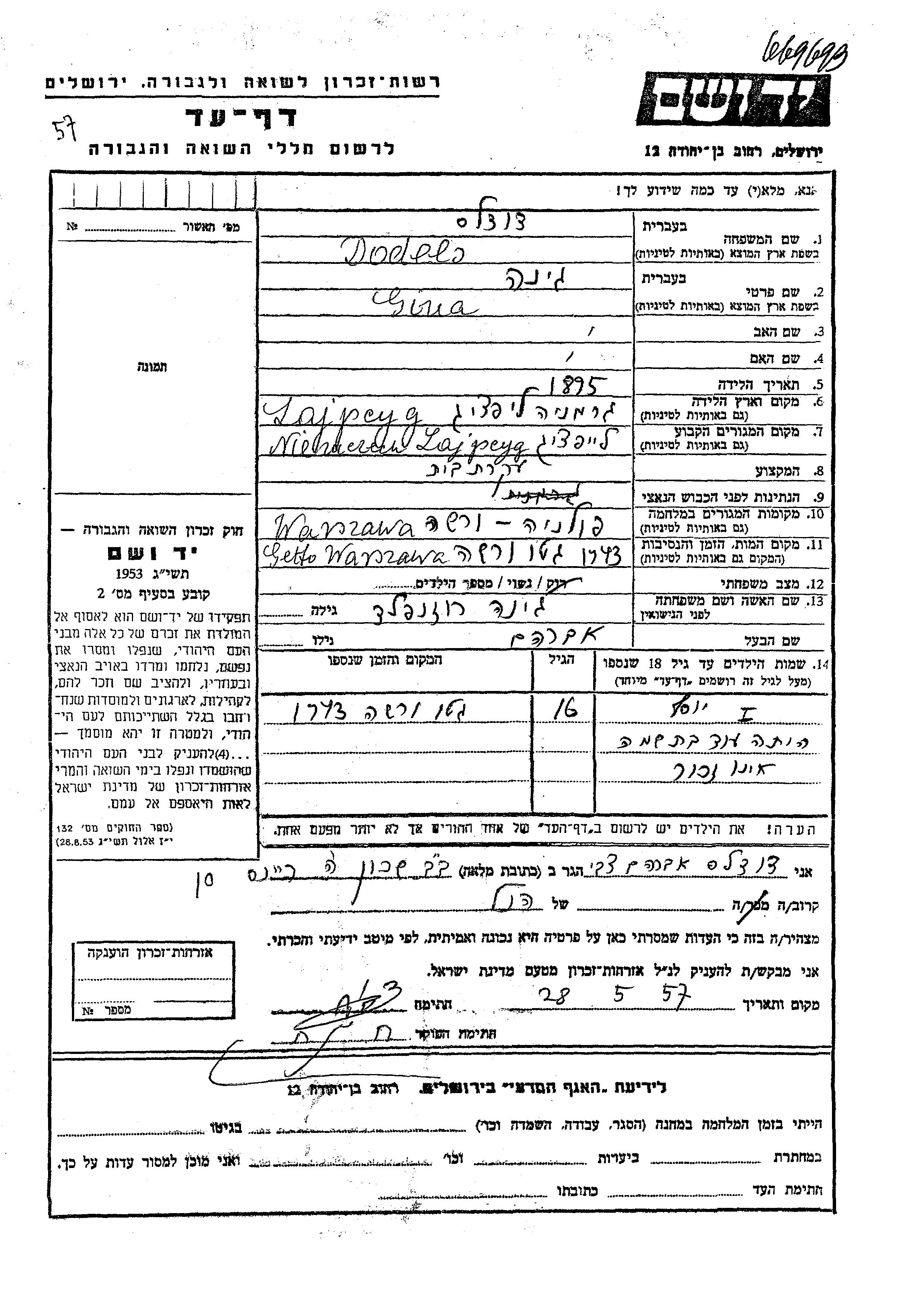 Gina wurde in der Schoah ermordet. Todesort: Warszawa, Polen im Jahr 1943.