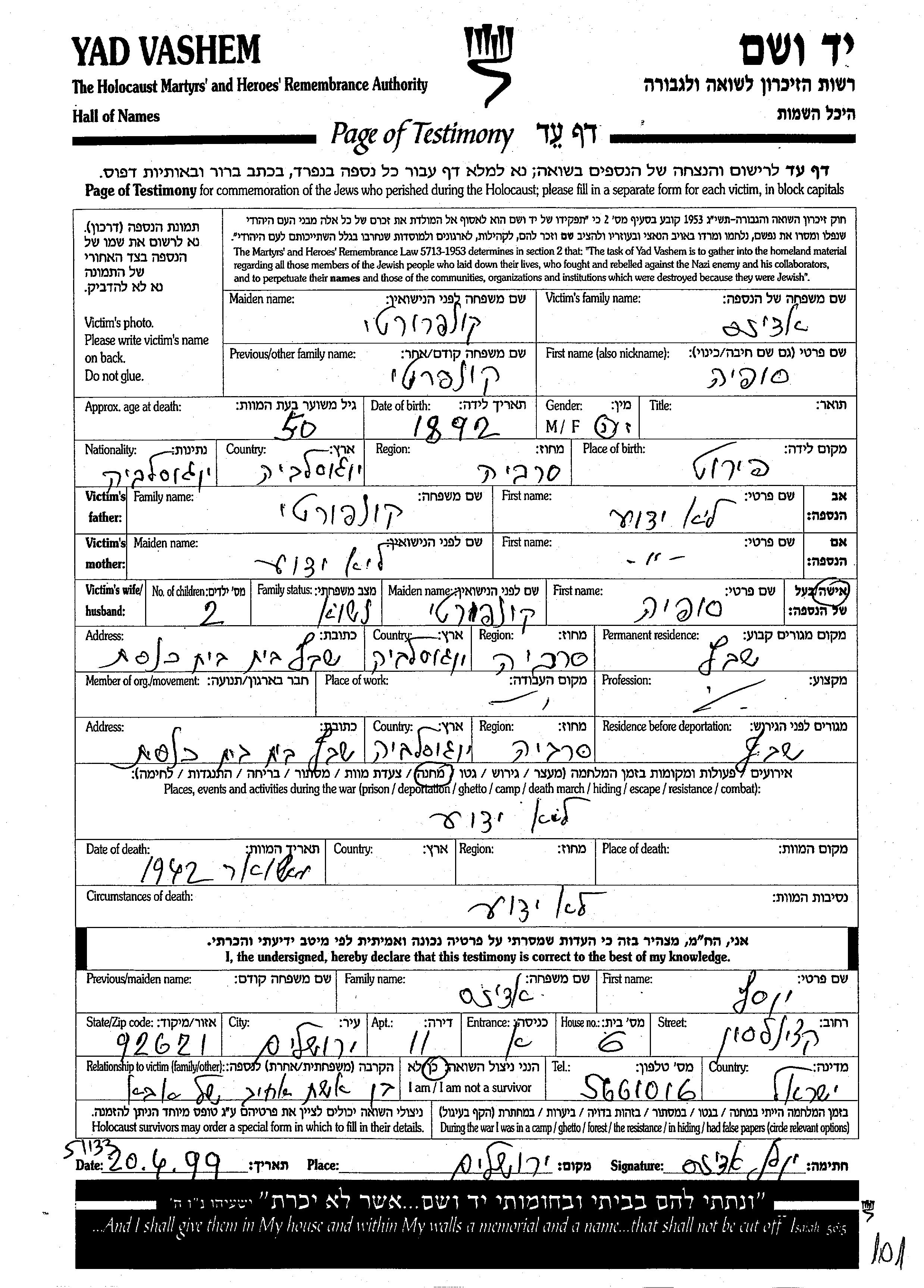Sofia Adizhes, geb. Conforti wurde im Jahr 1892 in Pirot, Jugoslawien geboren. Sie war Verheiratet. Vor dem Zweiten Weltkrieg lebte sie in Sabac, Jugoslawien. Während des Krieges war sie in Lager.