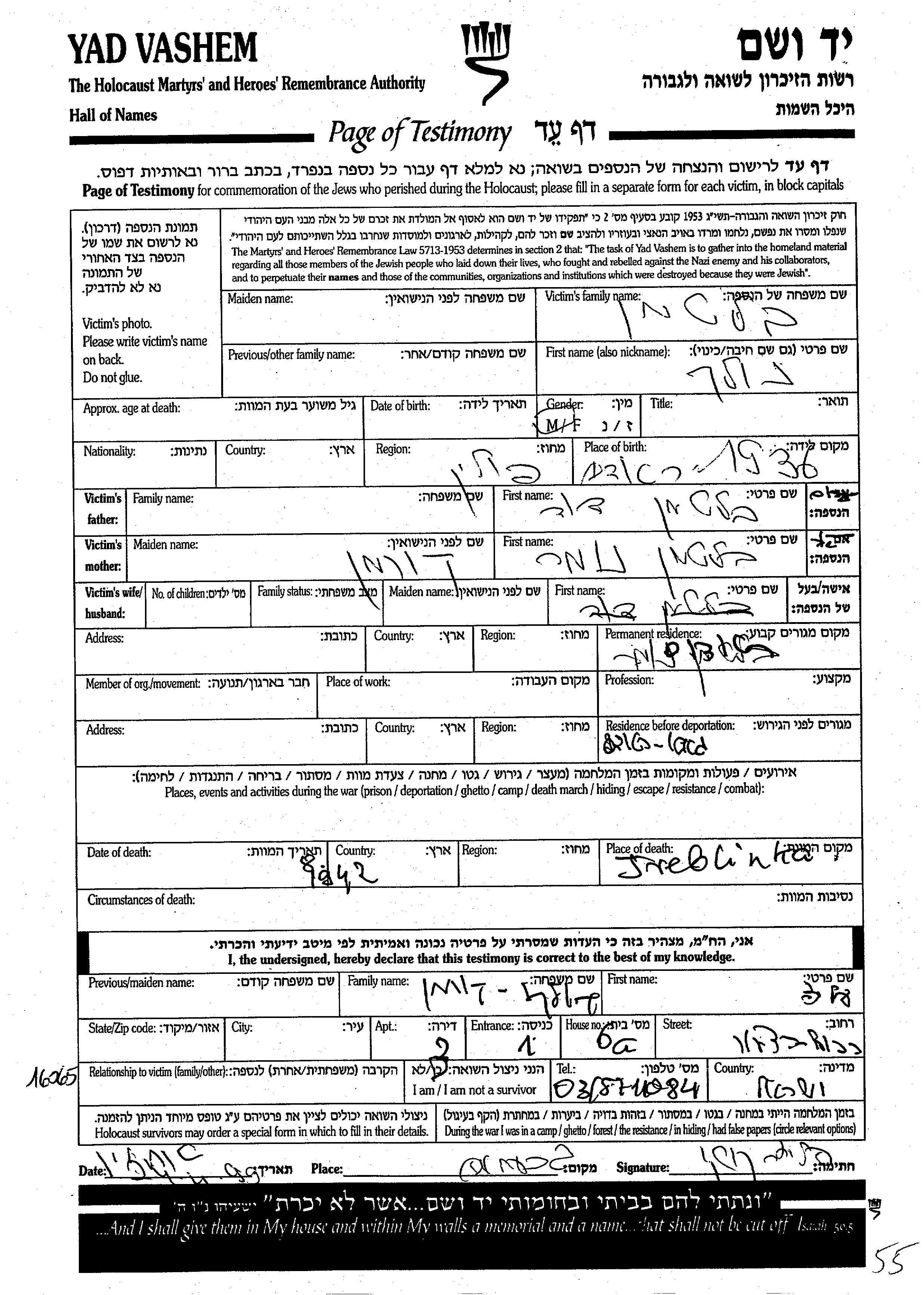 Nolek wurde in der Schoah ermordet. Todesort: Treblinka, Polen im Jahr 08/1942.
