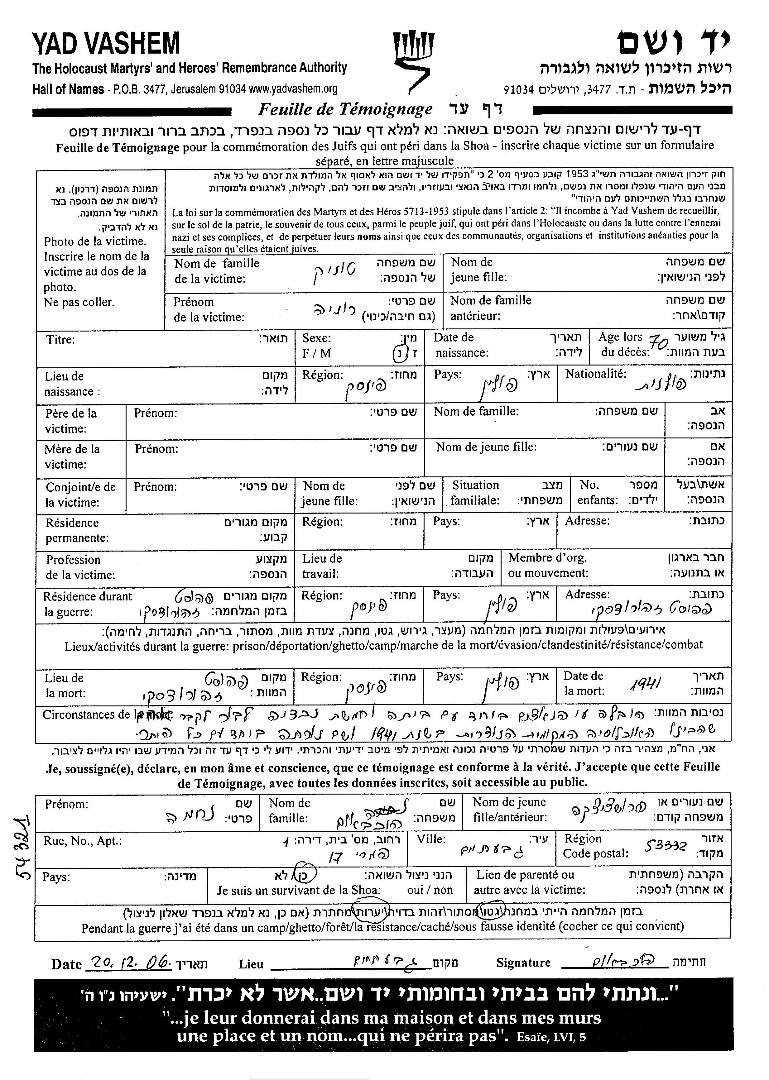 Ronia wurde in der Schoah ermordet. Todesort: Pohost Zagorodski, Polen im Jahr 1941.