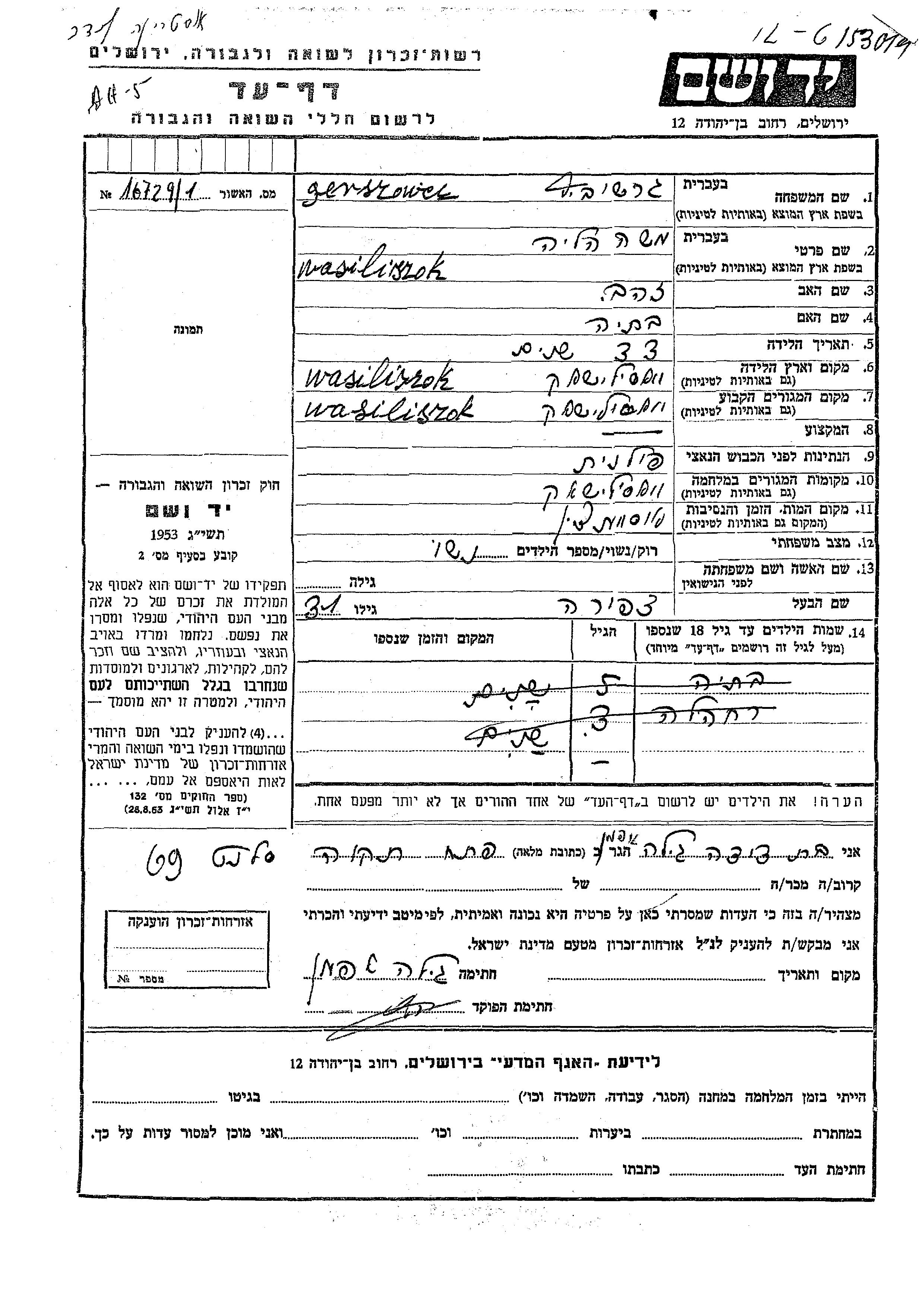 Gerszovicz Moshe Hela Wasiliszki, Polen Gedenkblatt
