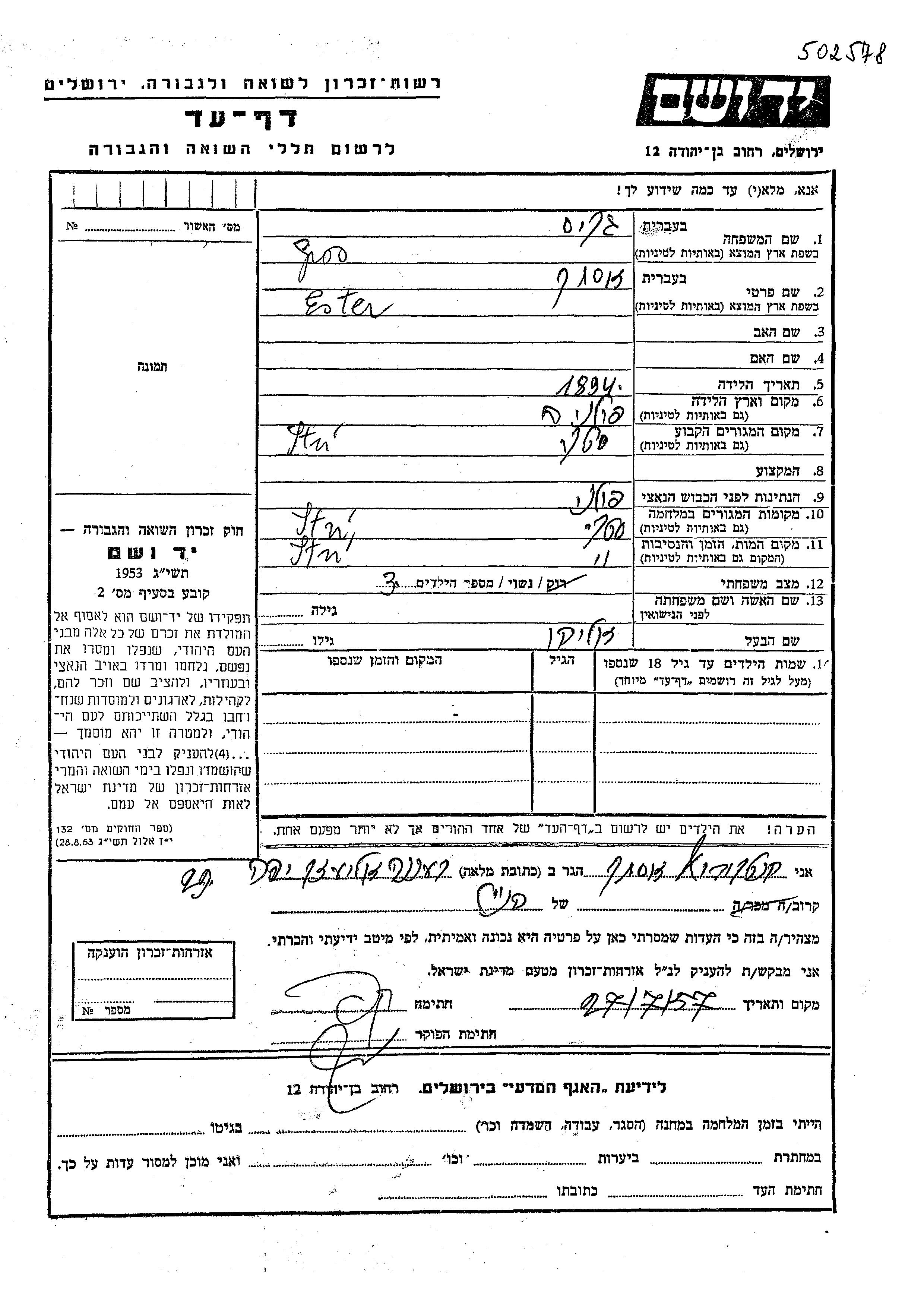 Ester wurde in der Schoah ermordet. Todesort: Stri, Polen.
