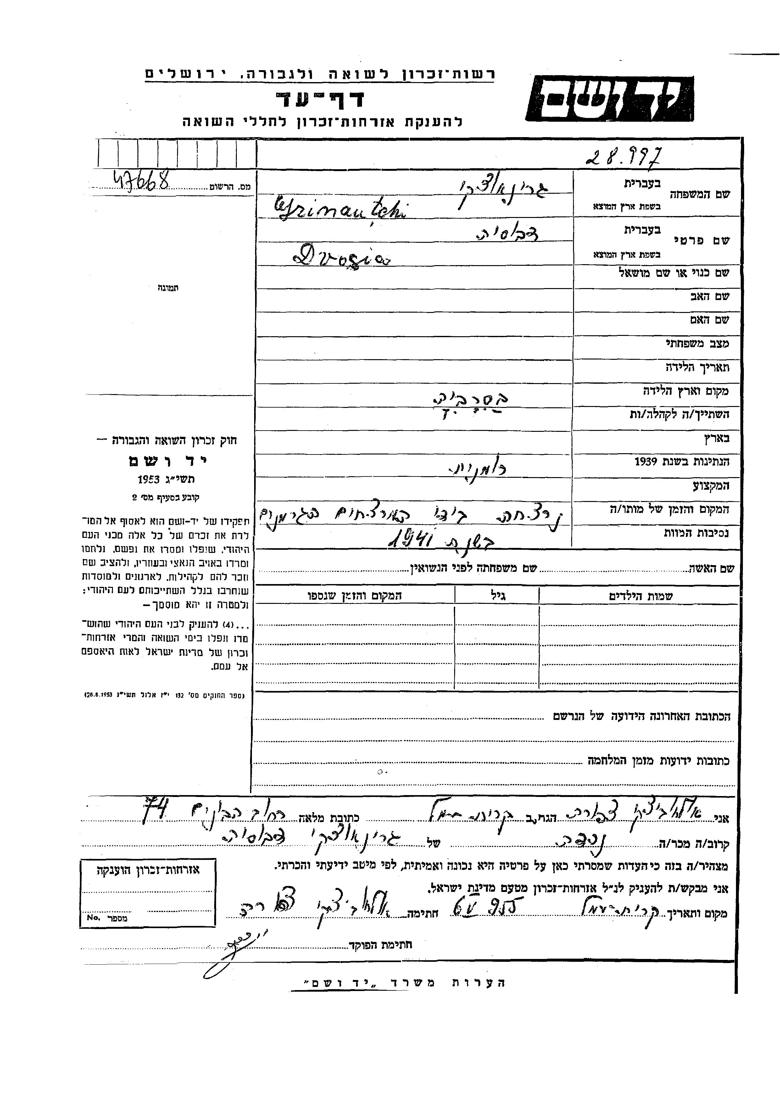 Suche nach einem Todesjahr im Zeitraum der Holocaust: 1933 bis 1945. Bitte wählen Sie 'Exakt' im Auswahlmenü, um nur nach einem einzelnen Jahr zu suchen, alternativ können Sie die flexibleren Optionen '+/- 2 Jahre' oder '+/- 5 Jahre' wählen.