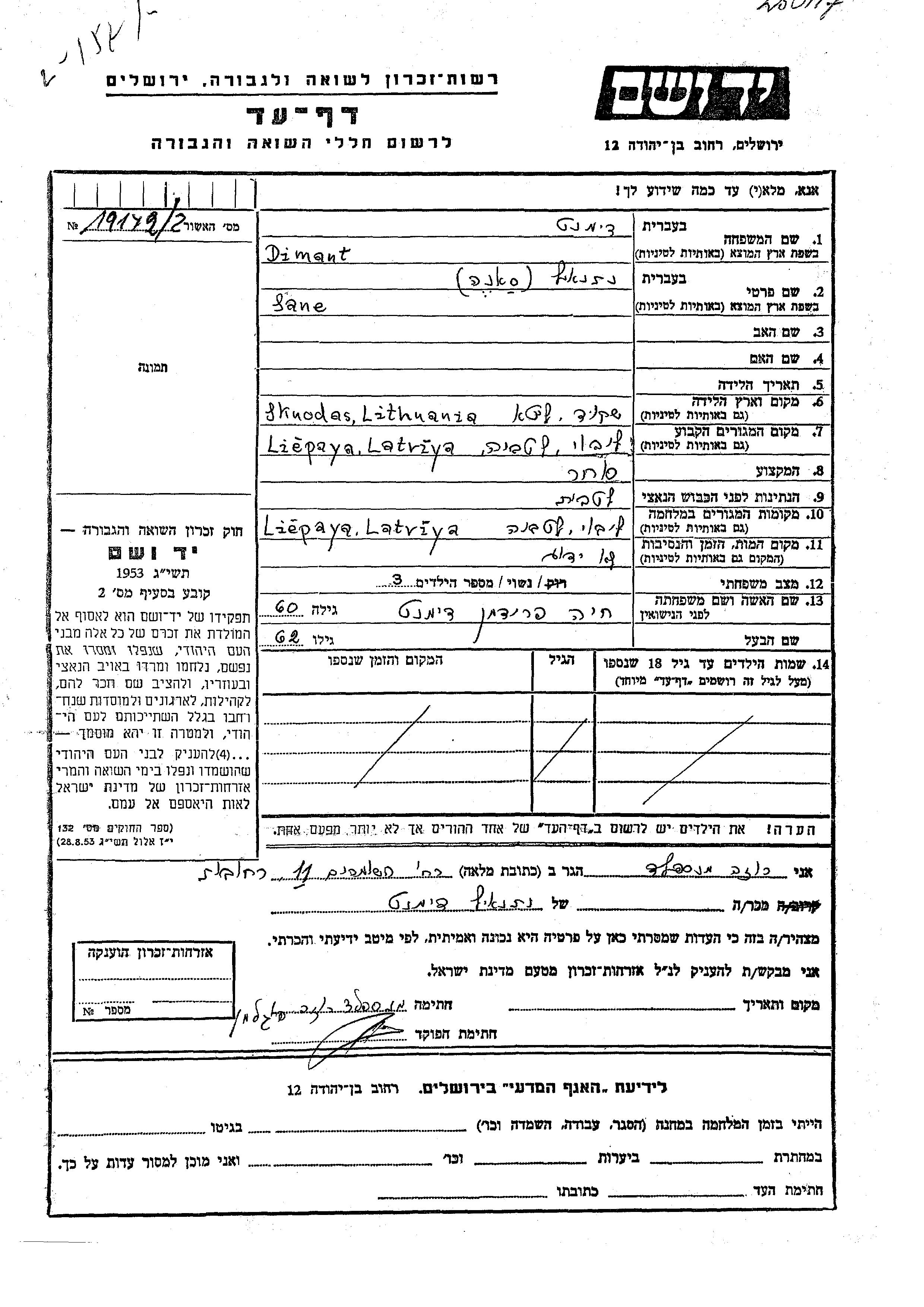 Dimant Sana Natanel Liepaja, Lettland Gedenkblatt