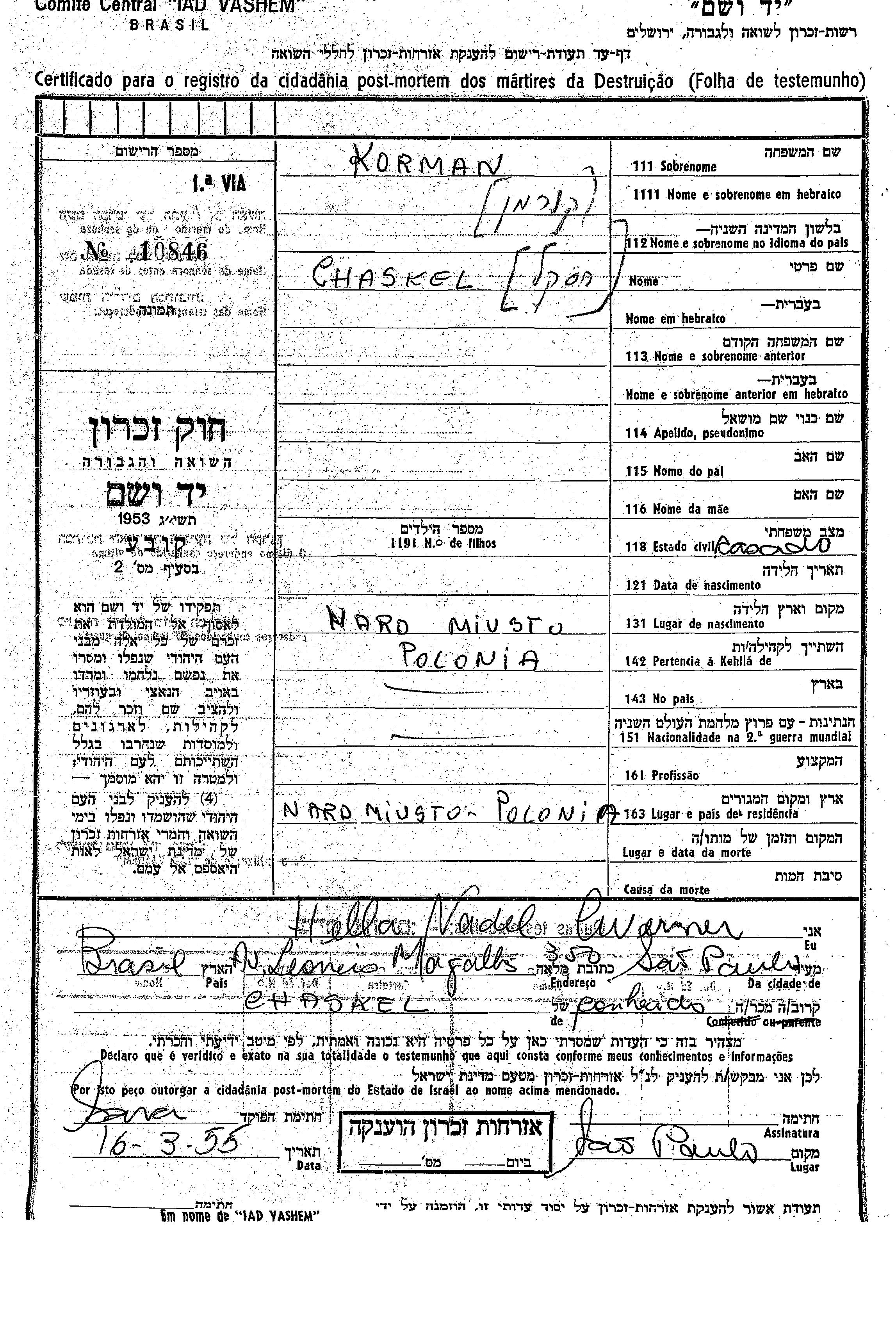 Chaskel Korman wurde in Polen geboren. Er war Verheiratet. Vor dem Zweiten Weltkrieg lebte er in Polen.