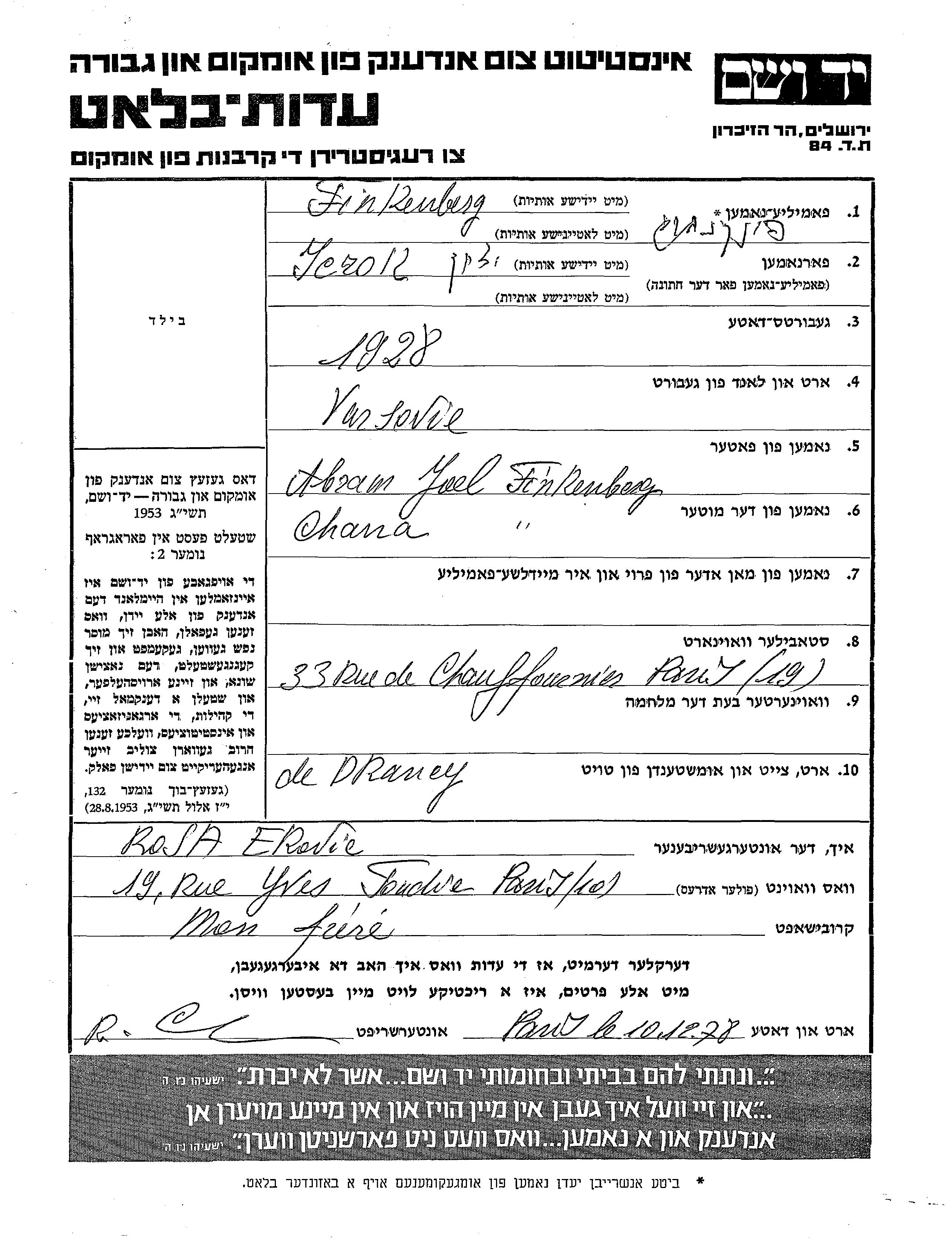 Suche nach einem Todesjahr im Zeitraum der Holocaust: 1933 bis 1945. Bitte wählen Sie 'Exakt' im Auswahlmenü, um nur nach einem einzelnen Jahr zu suchen, alternativ können Sie die flexibleren Optionen '+/- 2 Jahre' oder '+/- 5 Jahre' wählen.