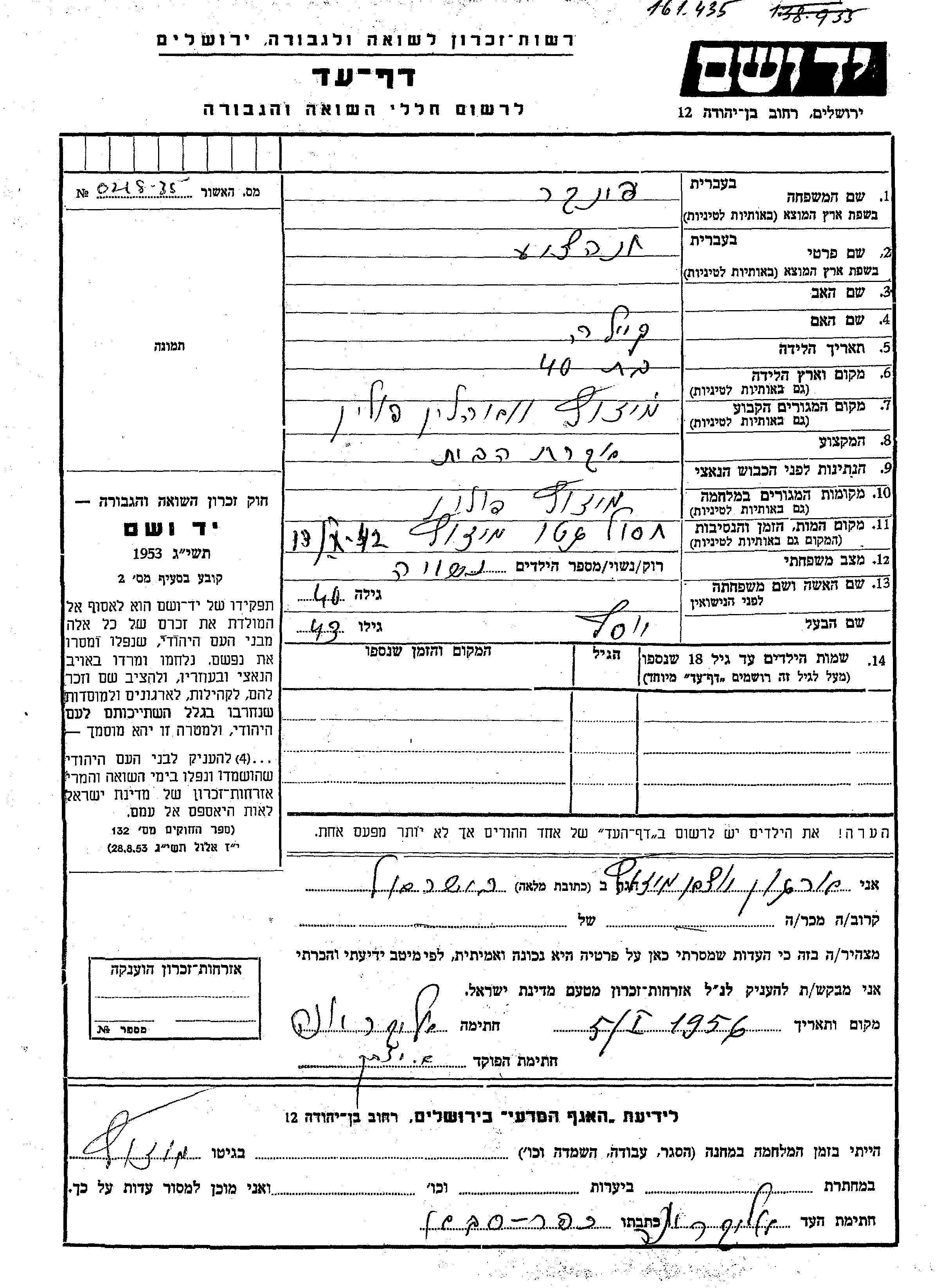 Khana Ketzina Finker wurde Sie war die Tochter von Keila. Sie war Hausfrau und mit Yosef Verheiratet. Vor dem Zweiten Weltkrieg lebte sie in Mizocz, Polen. Während des Krieges war sie in Mizocz, Polen.