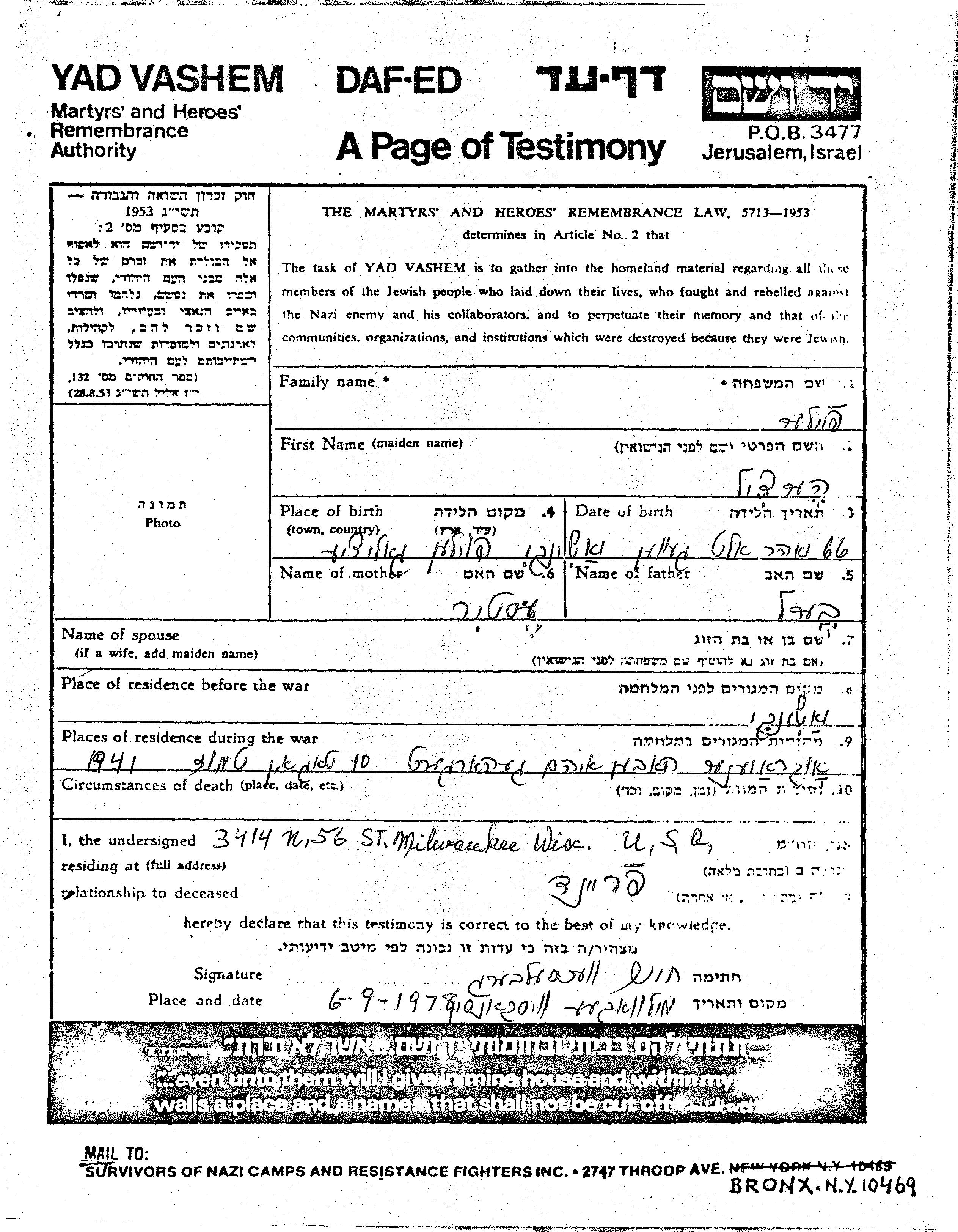 Hertzil wurde in der Schoah ermordet. Todesort: unbekannt im Jahr 1941.