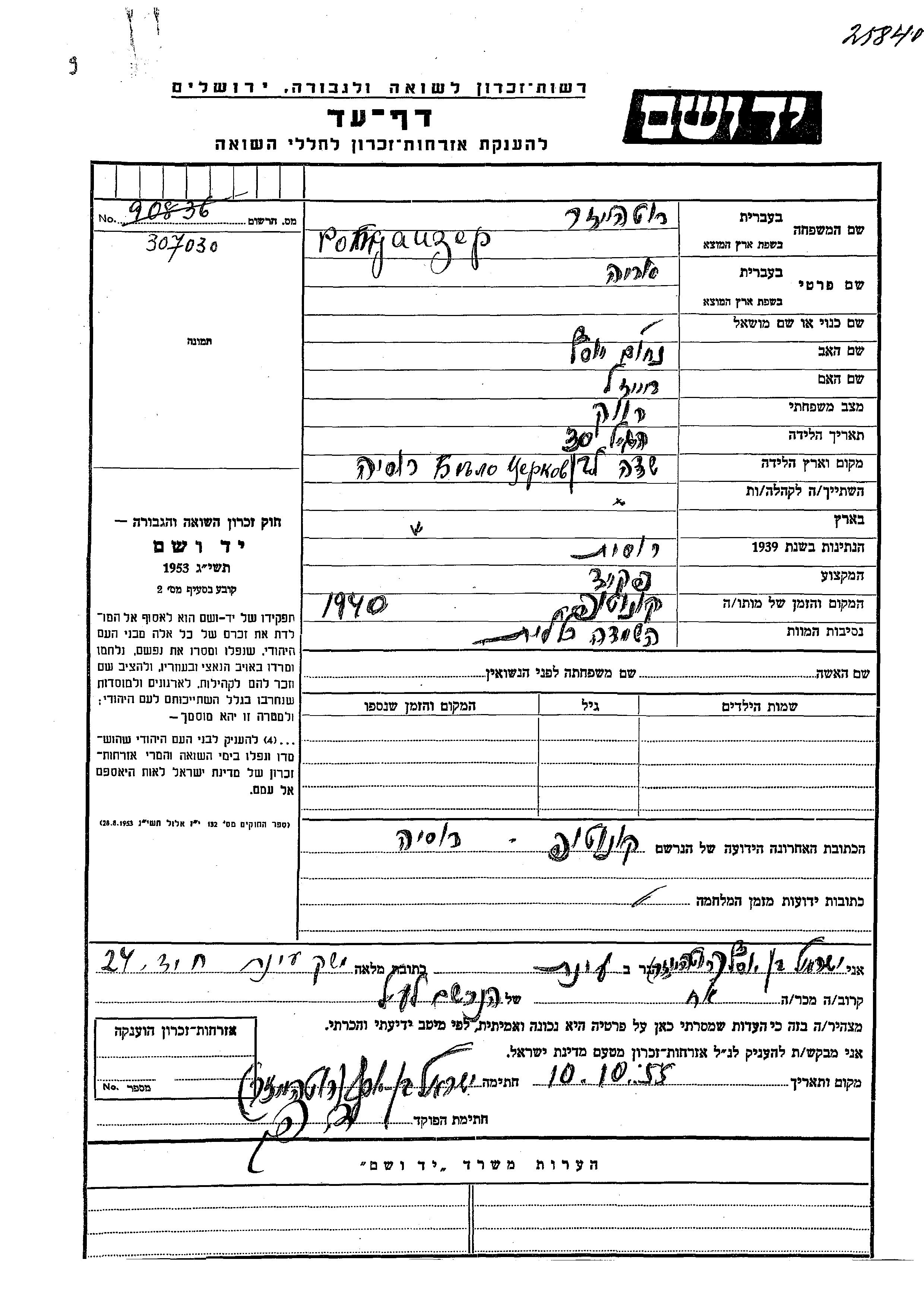 Arie wurde in der Schoah ermordet. Todesort: Konotop, Ukraine (UdSSR) im Jahr 1940.