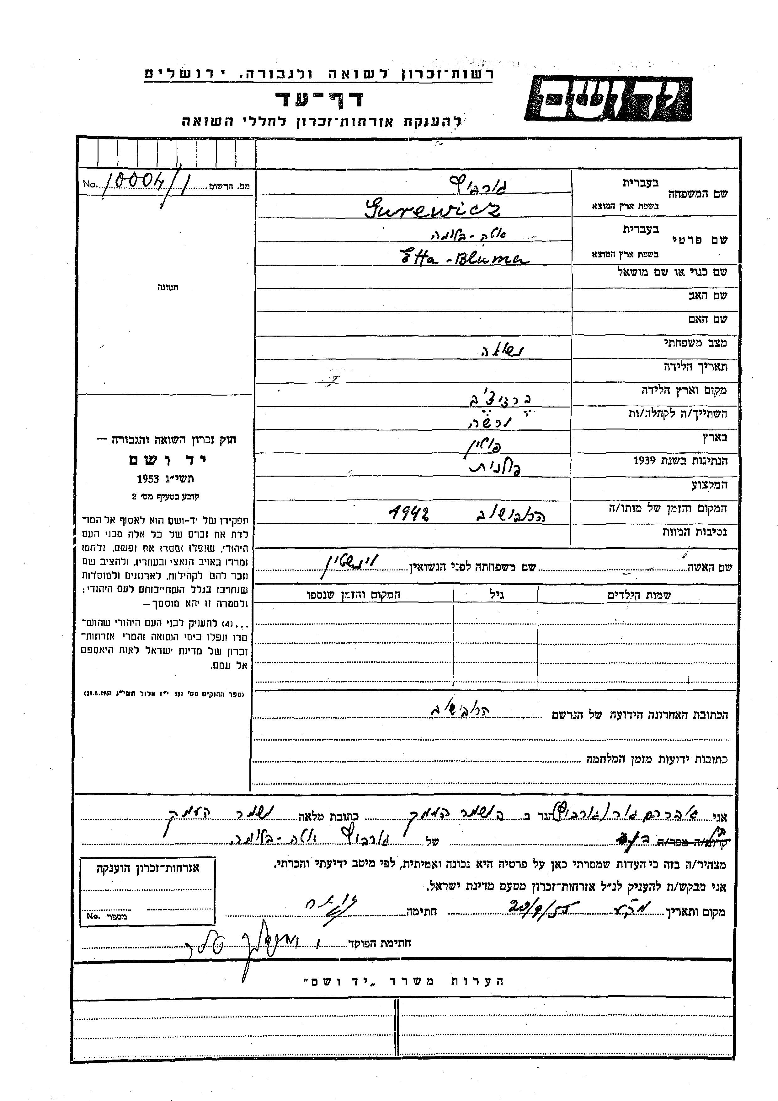 Gurewicz Etta Bluma unbekannter Ort, Gedenkblatt