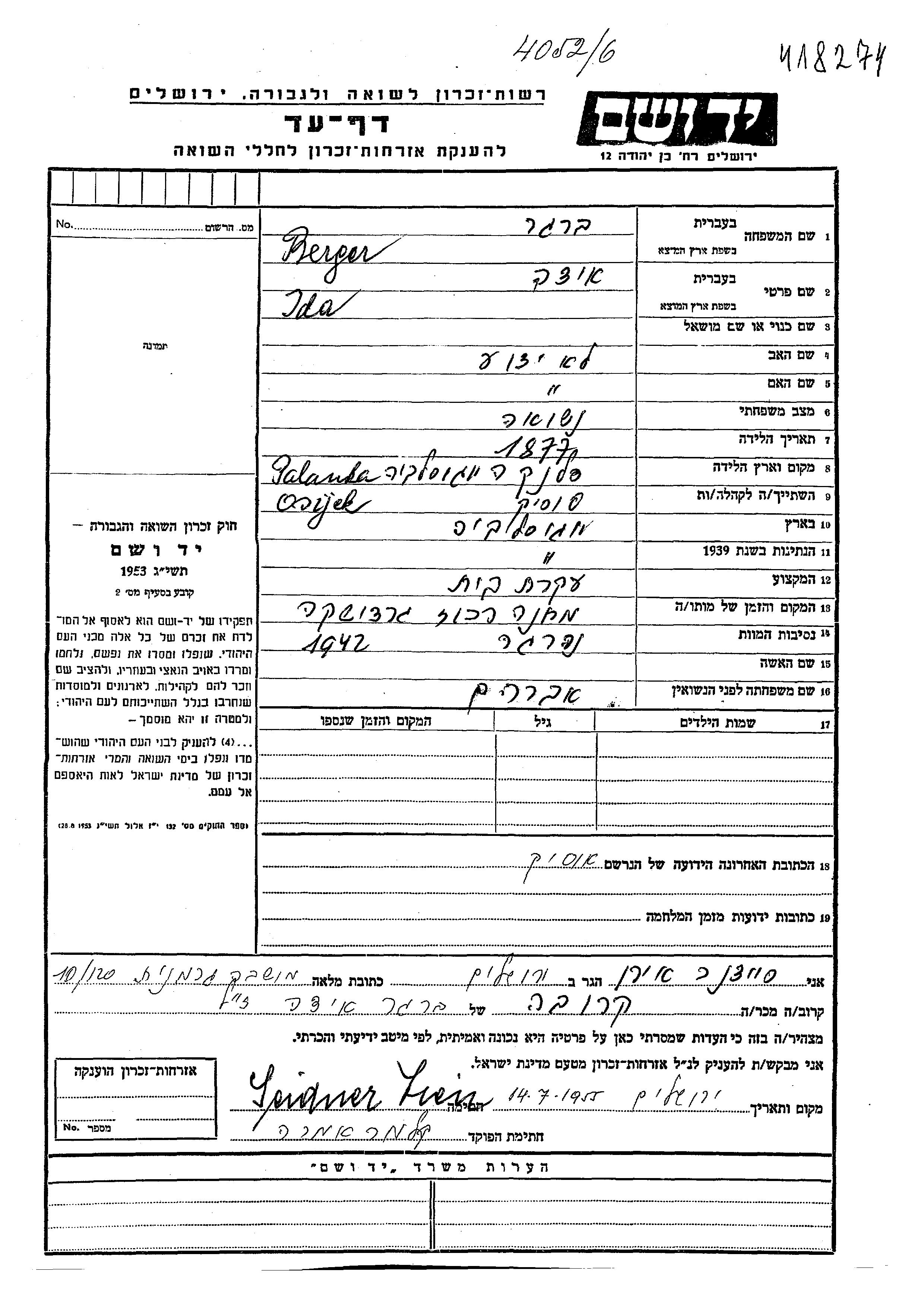 Ida wurde in der Schoah ermordet. Todesort: Gradishka, Jugoslawien im Jahr 1942.