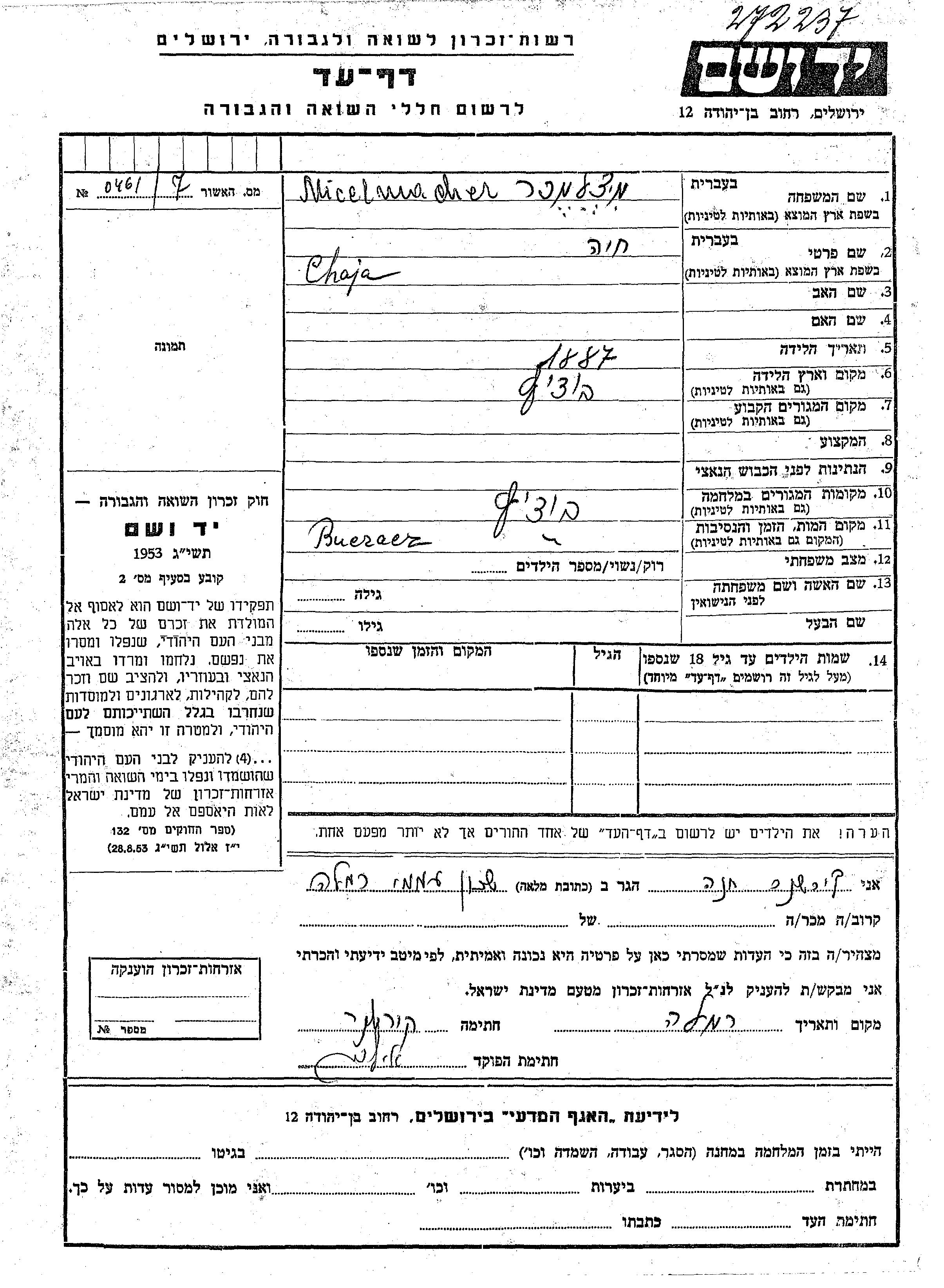 Chaia Micelmacher wurde im Jahr 1887 in Buczacz, Polen geboren. Während des Krieges war sie in Buczacz, Polen.