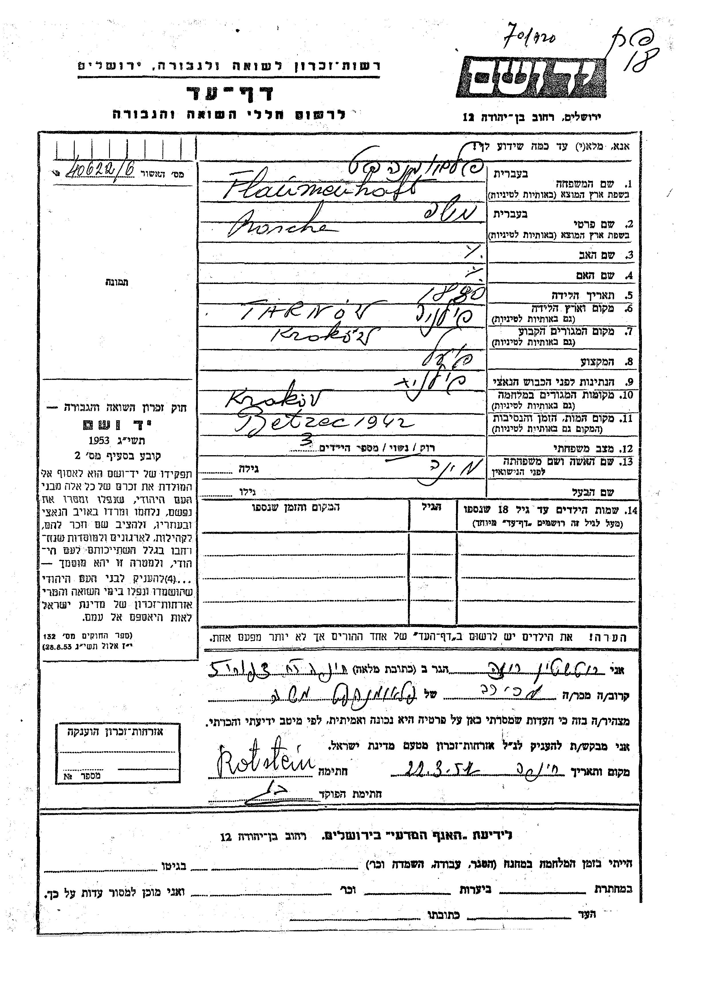 Mosche wurde in der Schoah ermordet. Todesort: Belzec, Polen im Jahr 1942.