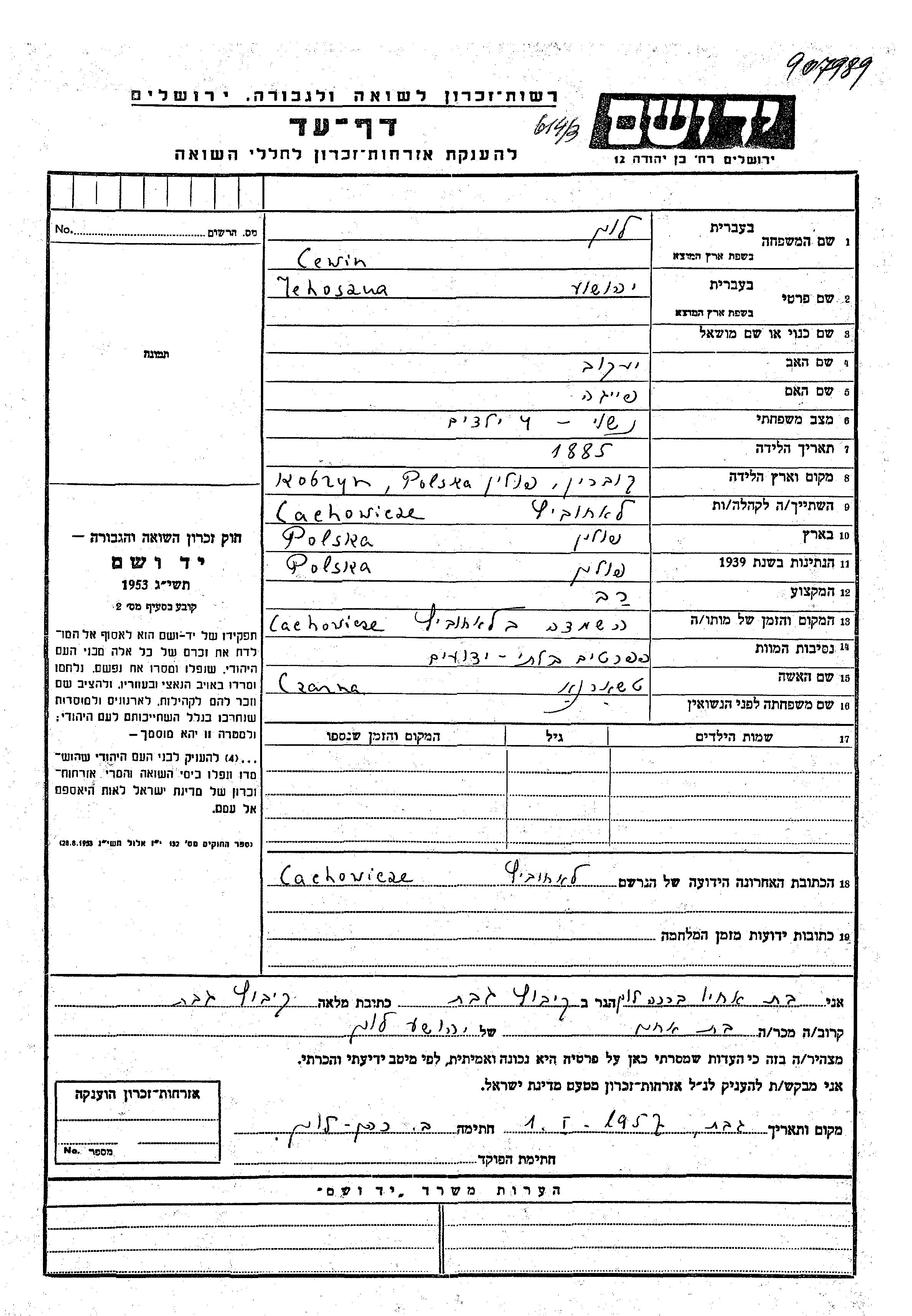 Jehoszua wurde in der Schoah ermordet. Todesort: Lachowicze, Polen.