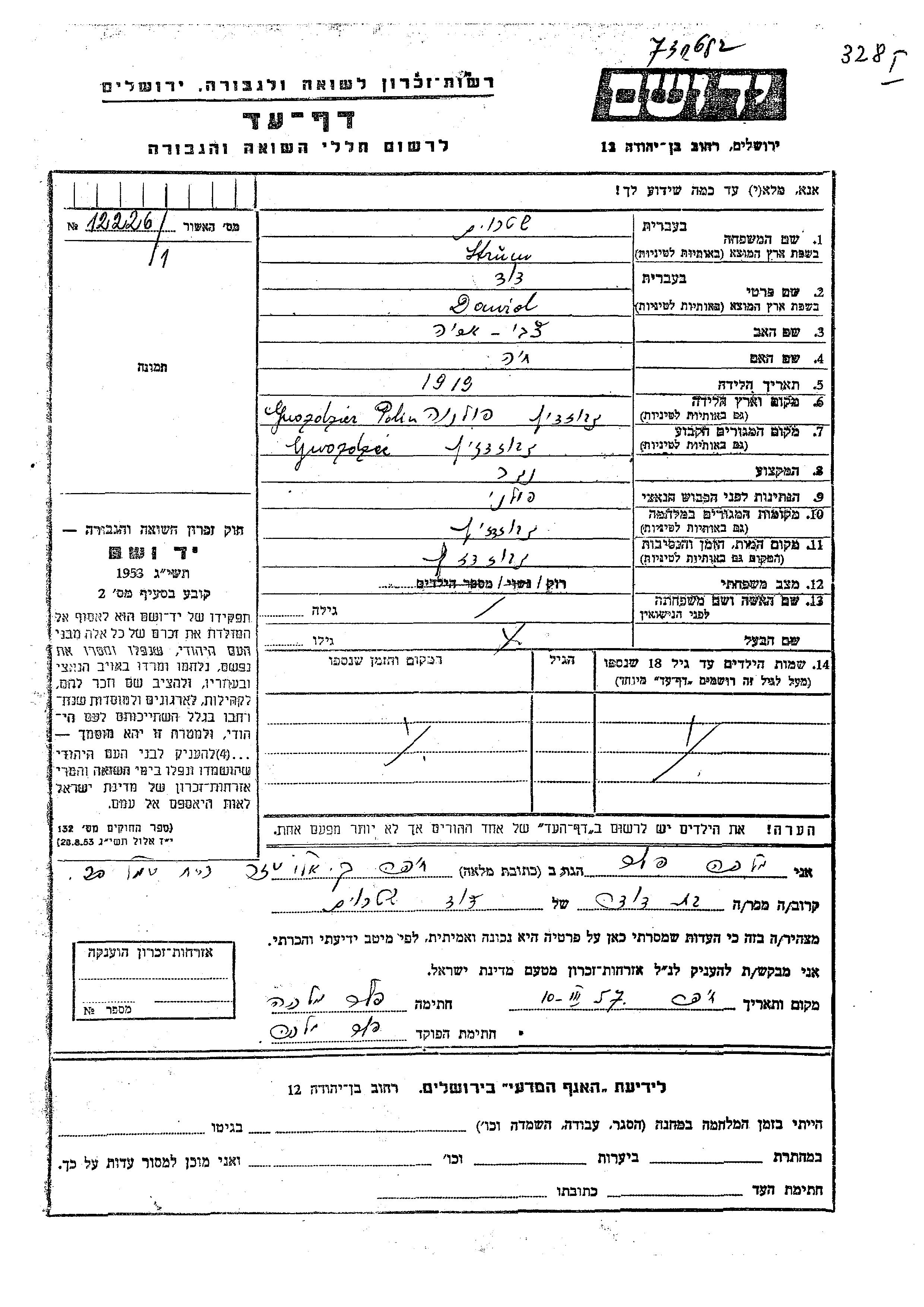 Dawid wurde in der Schoah ermordet. Todesort: Gwozdziec, Polen.