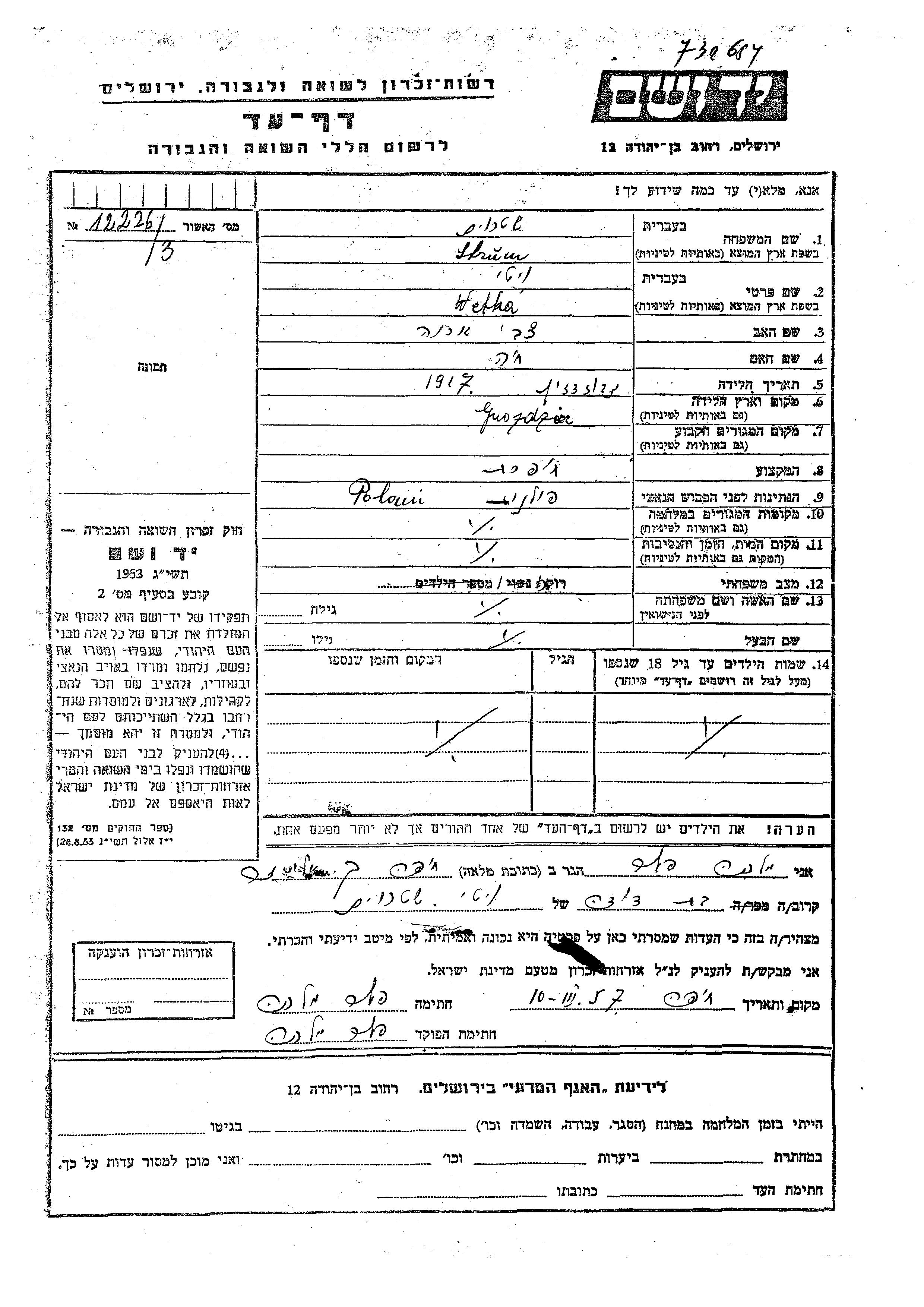 Wetka Strum Shtrum wurde im Jahr 1917 in Gwozdziec, Polen geboren. Sie war die Tochter von Tzvi Erna und Khaia. Sie war Schneiderin und Ledig. Während des Krieges war sie in Polen.