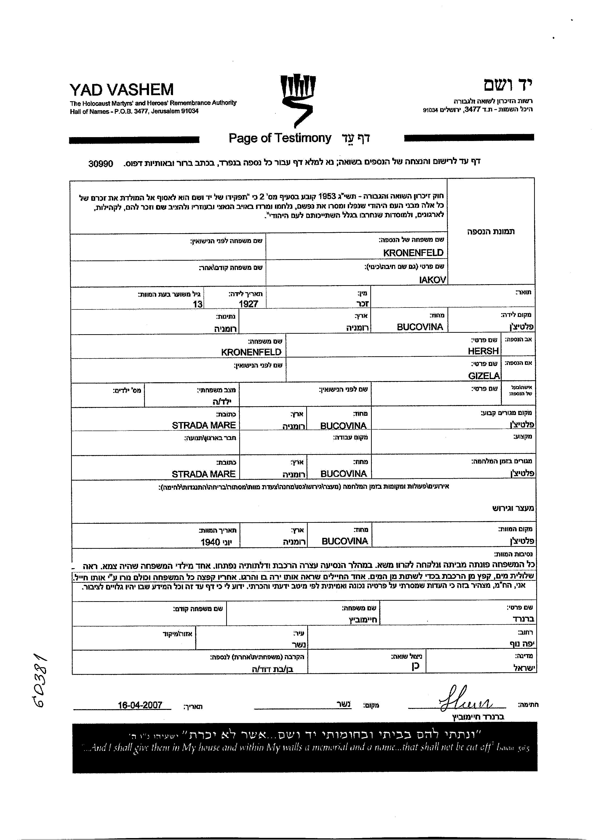 Iakov wurde in der Schoah ermordet. Todesort: Falticeni, Rumänien im Jahr 06/1940.