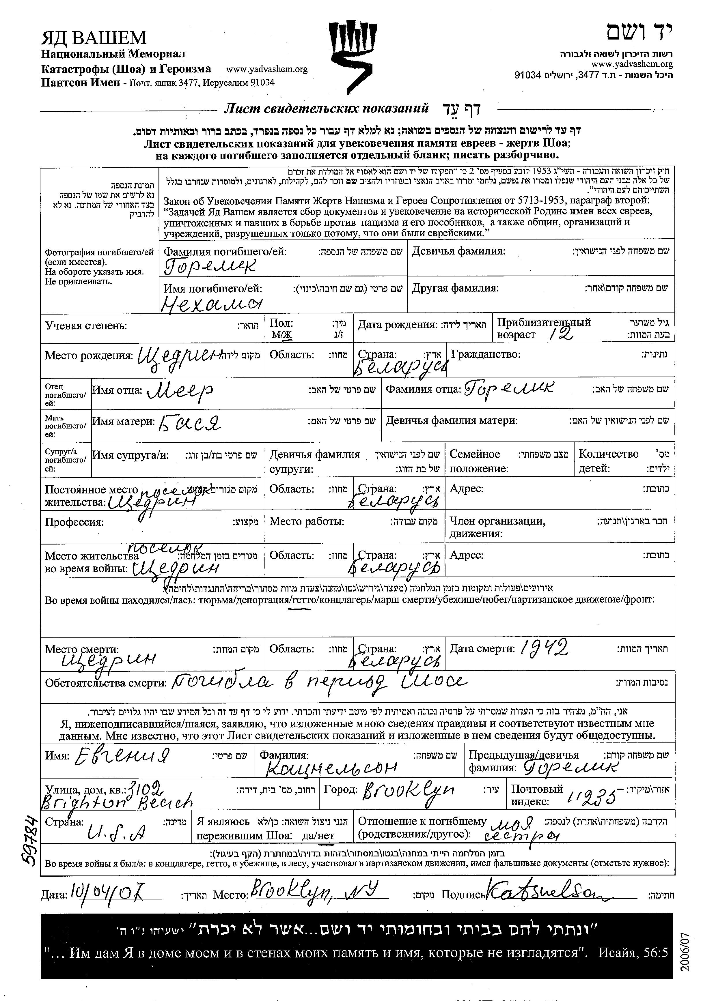 Nekhama wurde in der Schoah ermordet. Todesort: Shchedrin, Weißrussland (UdSSR) im Jahr 1942.