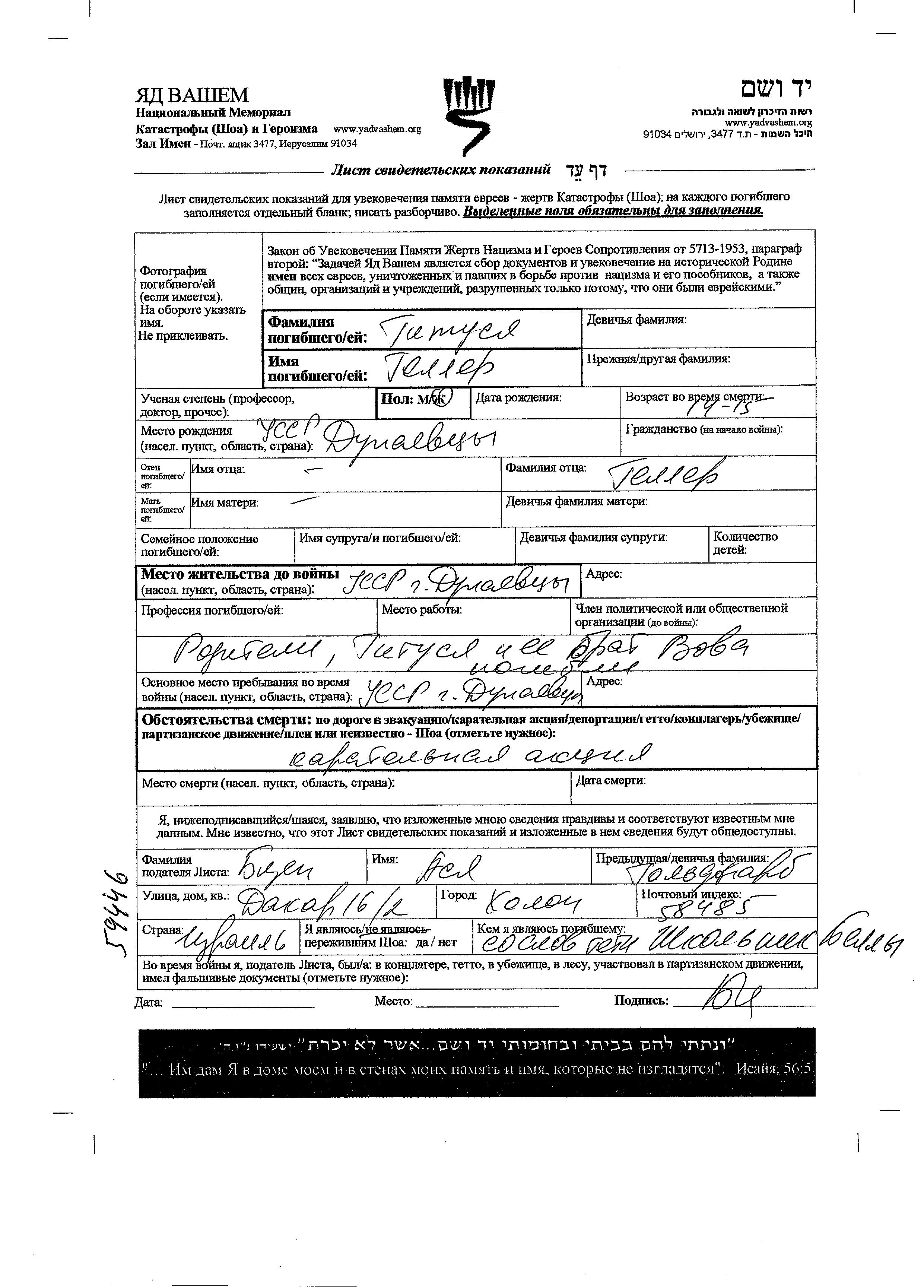 Geller Gitusia Dunayevtsy, Ukraine (UdSSR) Gedenkblatt