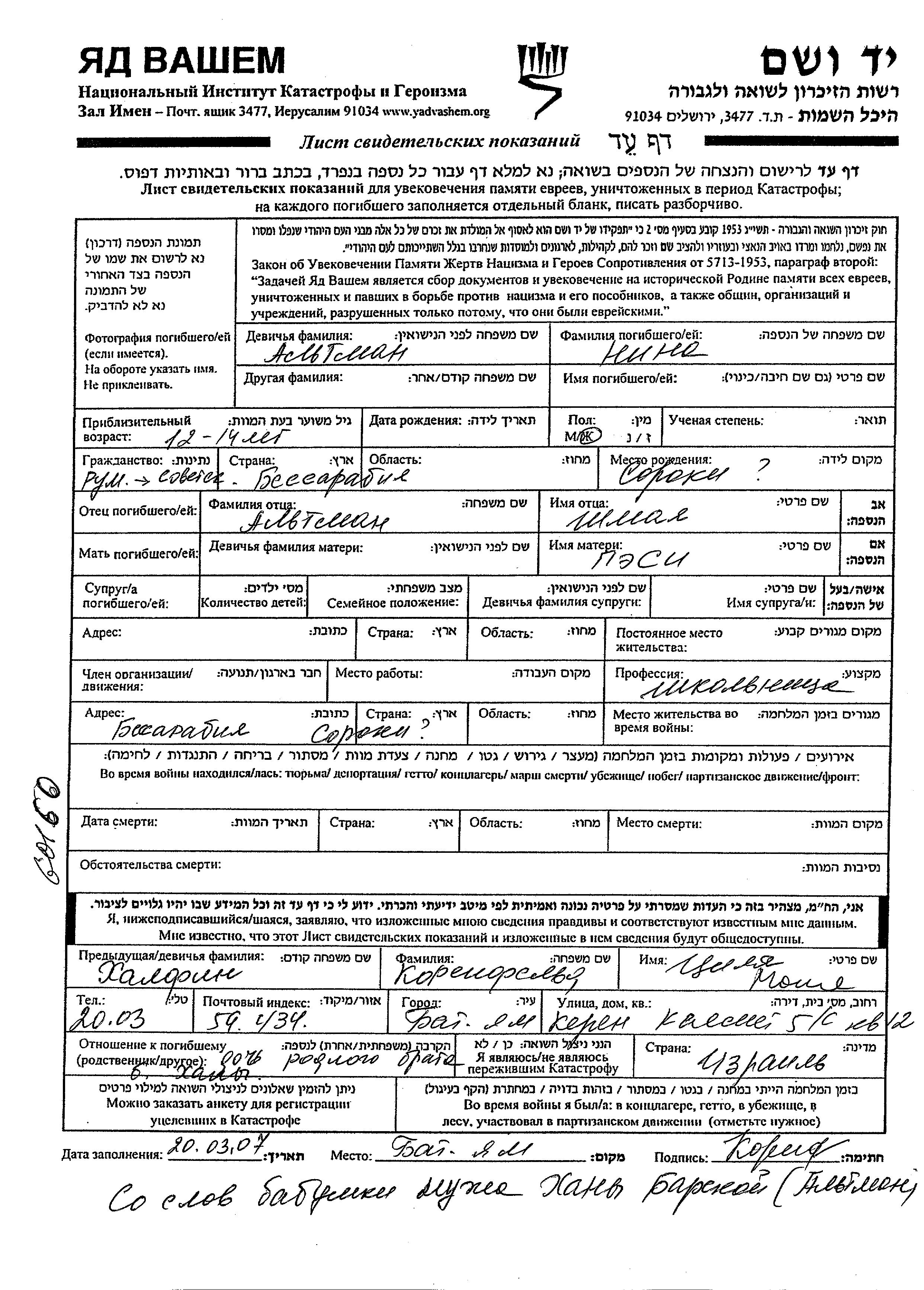 Altman Nina Soroki, Rumänien Gedenkblatt
