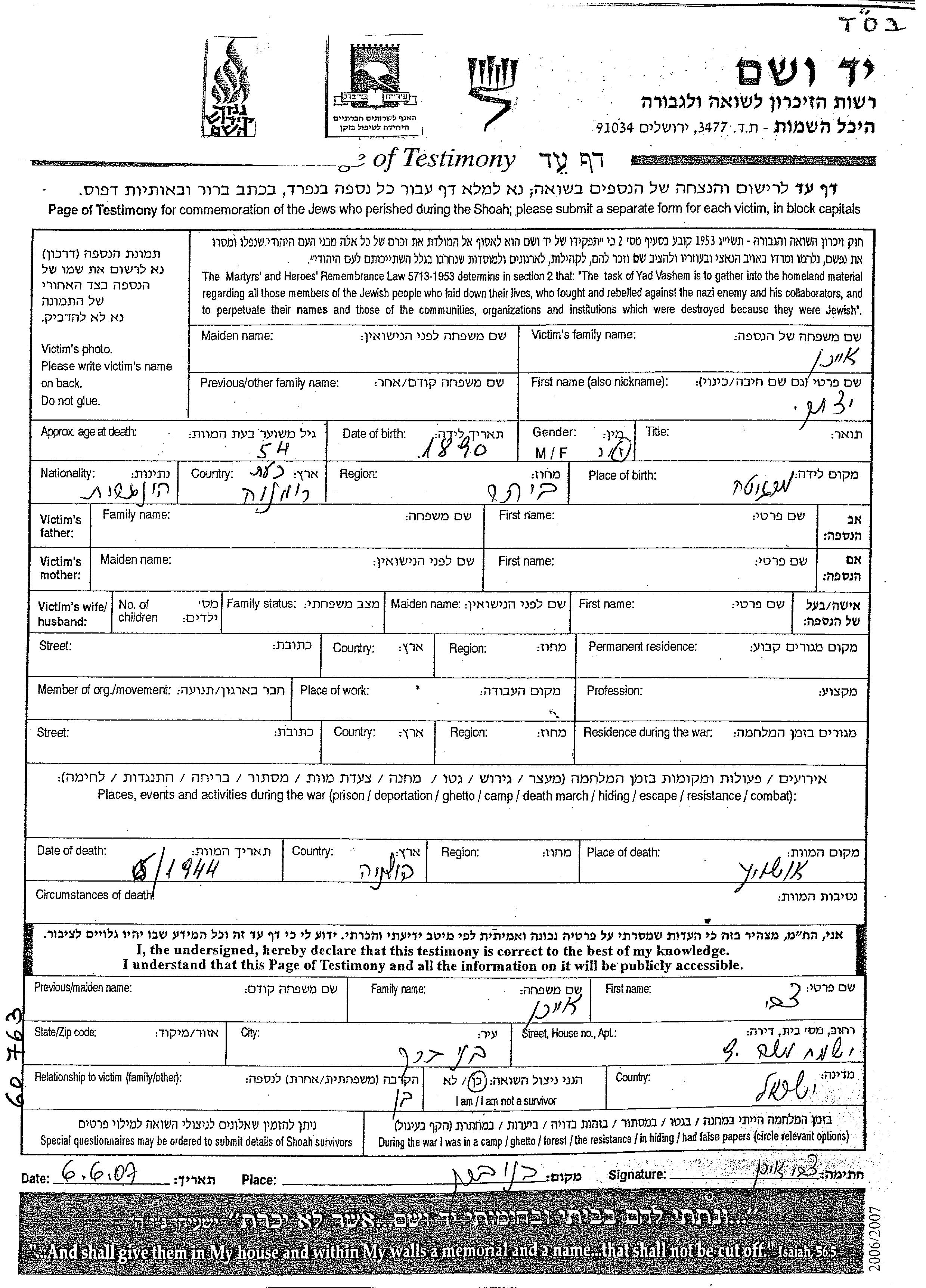 Yitzkhak wurde in der Schoah ermordet. Todesort: Auschwitz, Polen im Jahr 05/1944.