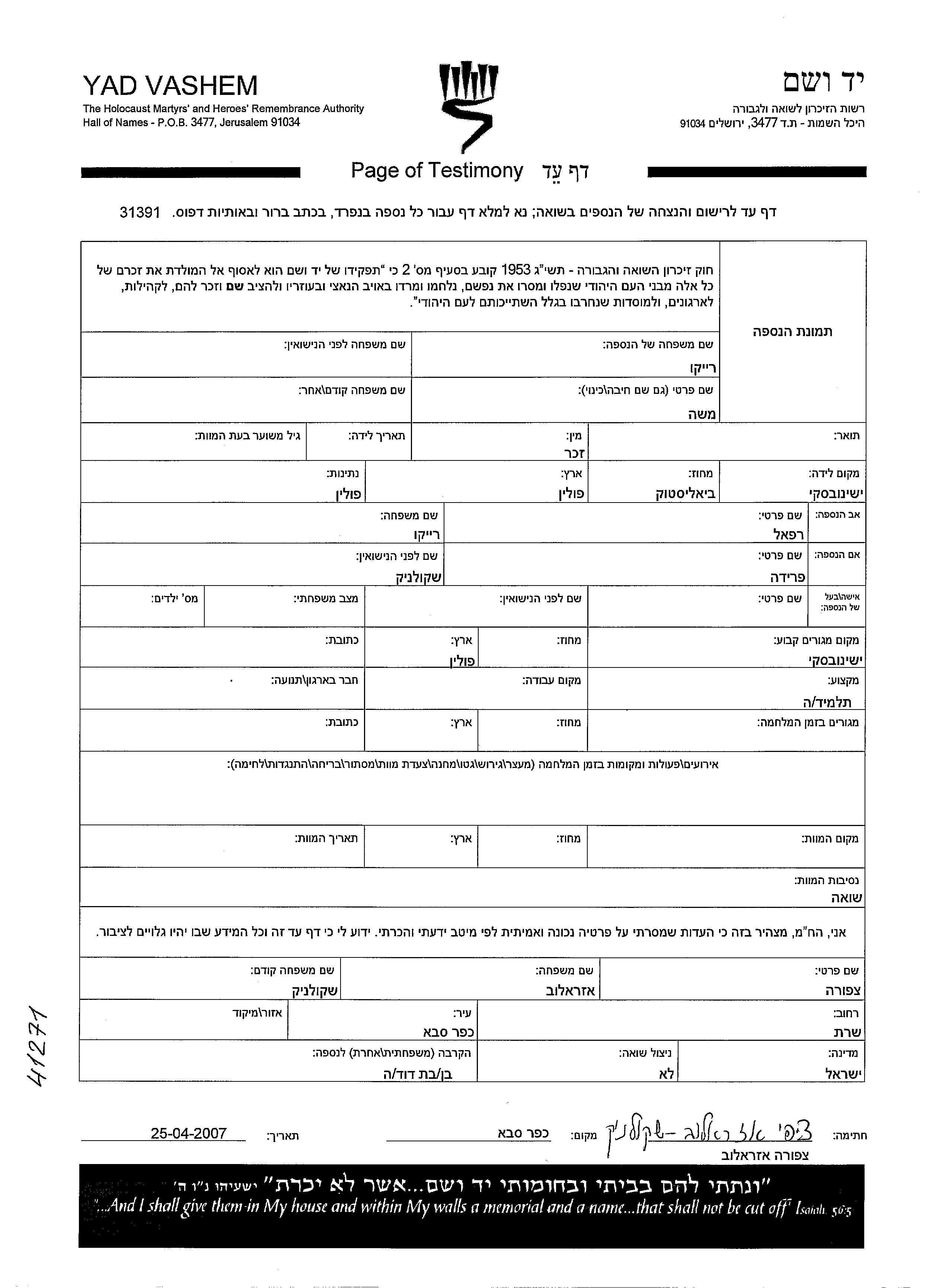 Moshe wurde in der Schoah ermordet.