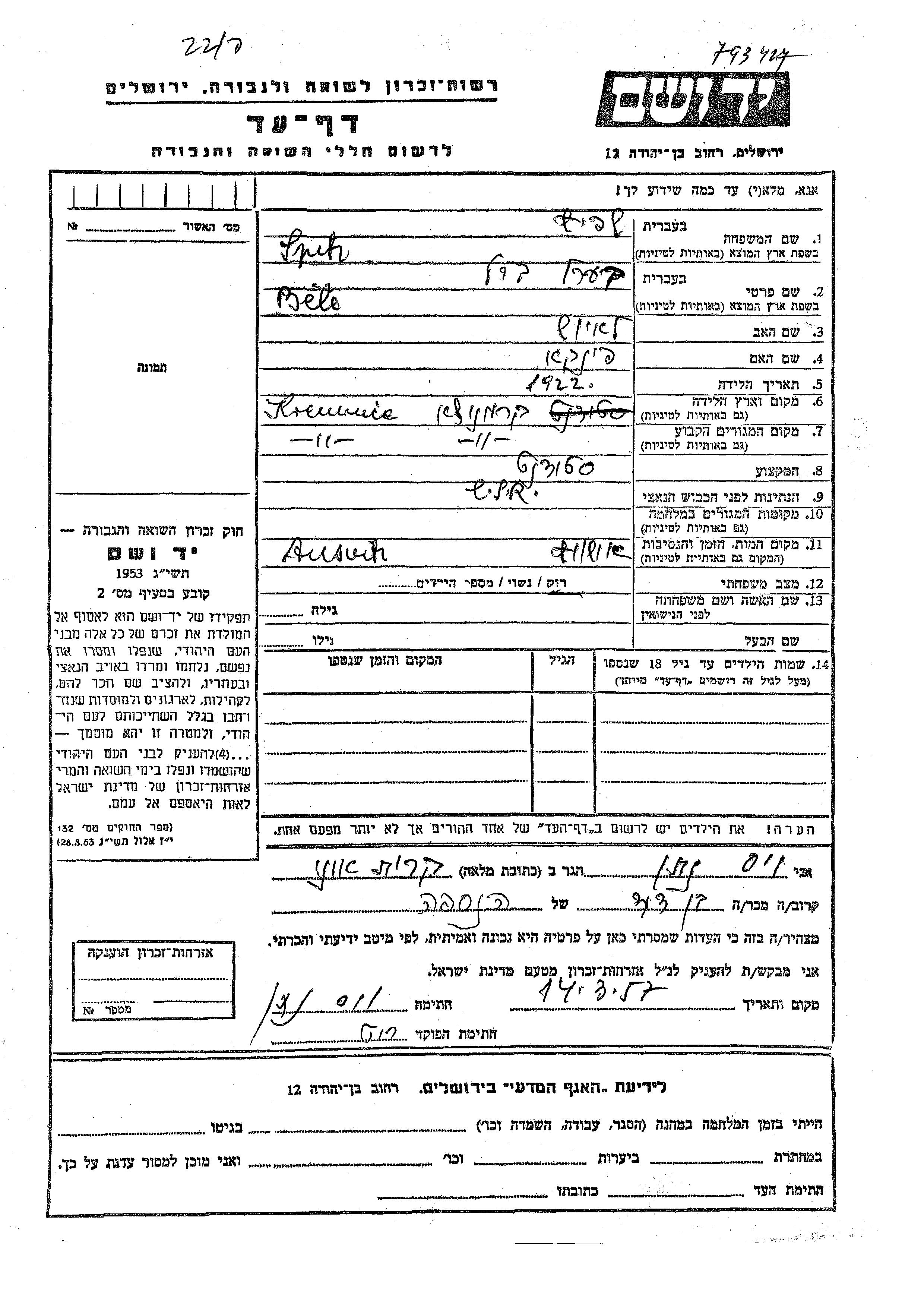 Bela Berl Spitz wurde im Jahr 1922 in Kremnica, Tschechoslowakei geboren. Sie war die Tochter von Laiosh und Finke. Sie war Student und Ledig. Vor dem Zweiten Weltkrieg lebte sie in Kremnica.
