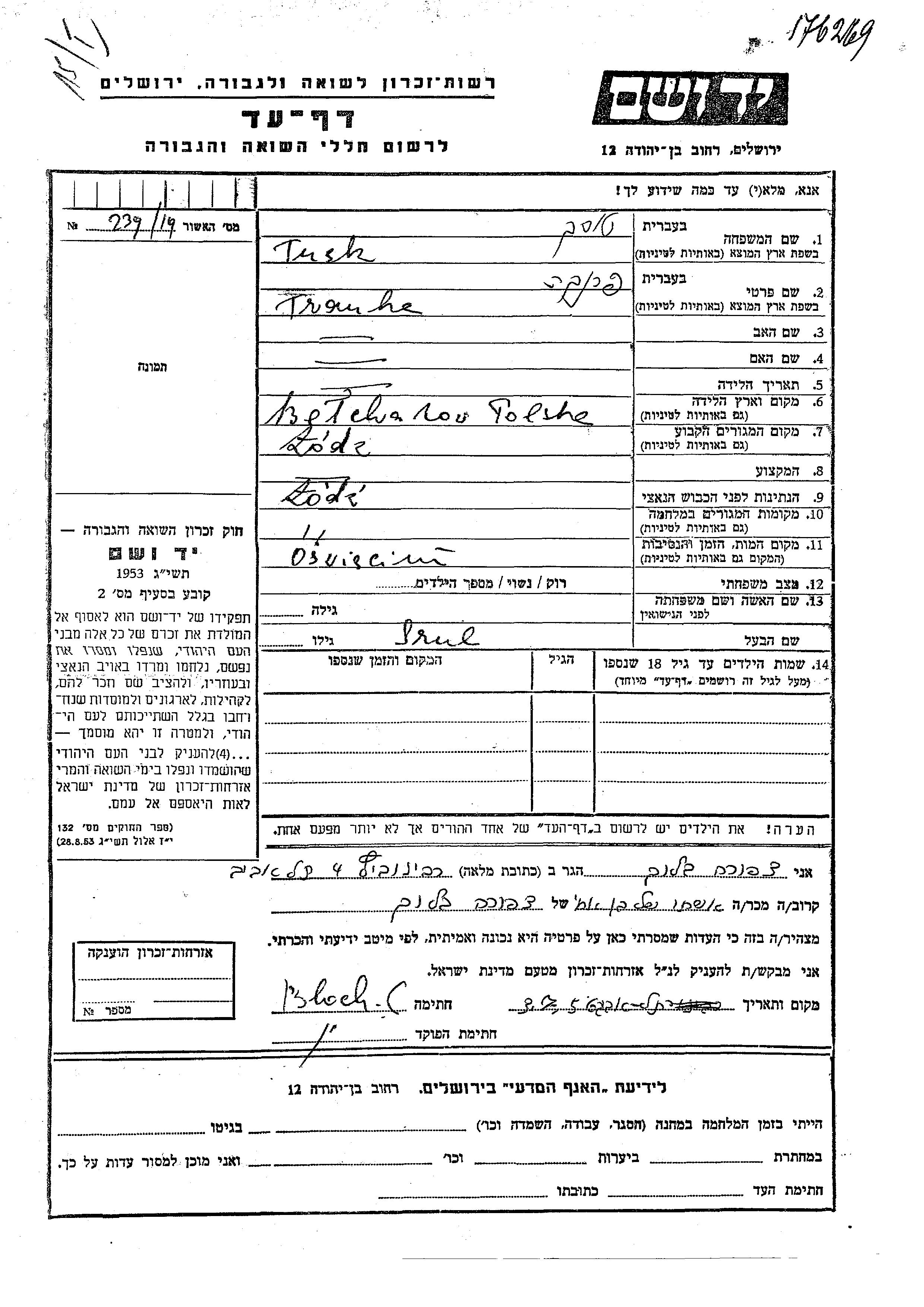 Yad Vashem - Gedenkblätter Sammlung
