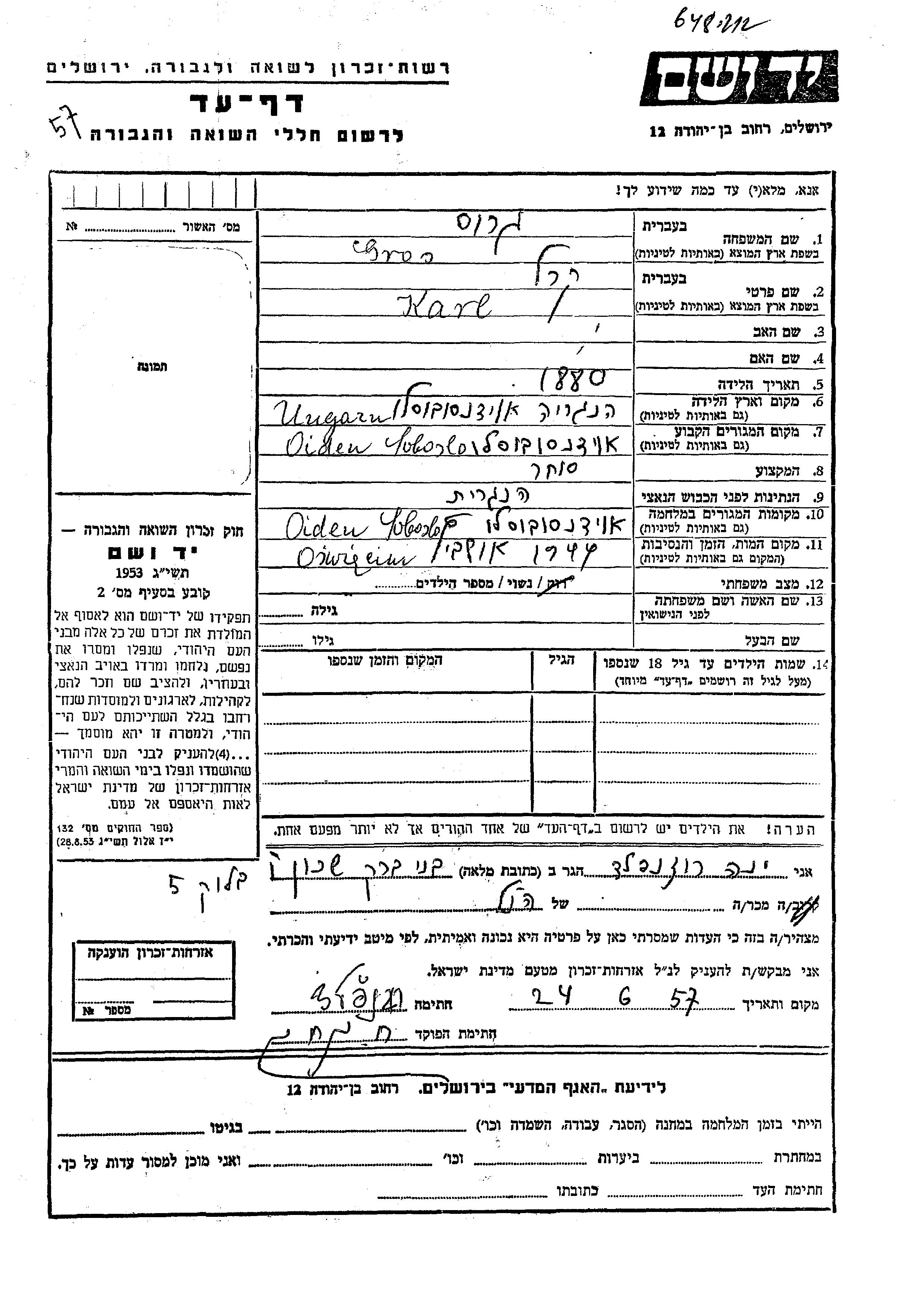 Karl wurde in der Schoah ermordet. Todesort: Auschwitz, Polen im Jahr 1944.
