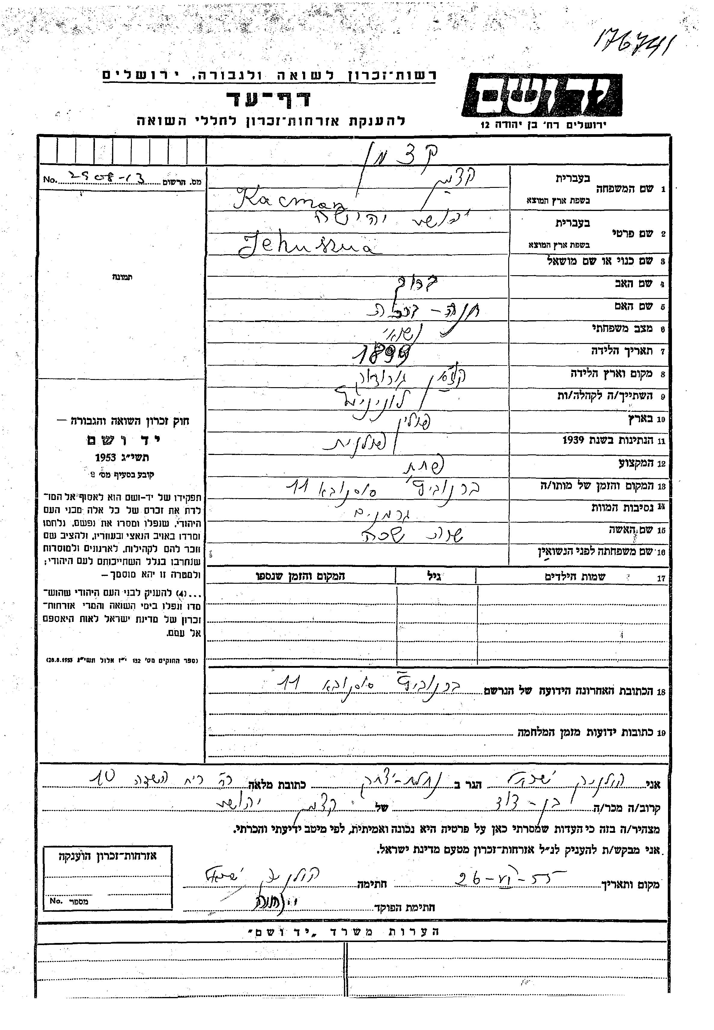 Jehuszua Kacman wurde im Jahr 1899 in Kożangródek, Polen geboren. Er war der Sohn von Barukh und Khana Brakha. Er war mit Sara Verheiratet. Vor dem Zweiten Weltkrieg lebte er in Luniniec, Polen. Während des Krieges war er in Baranowicze, Polen.