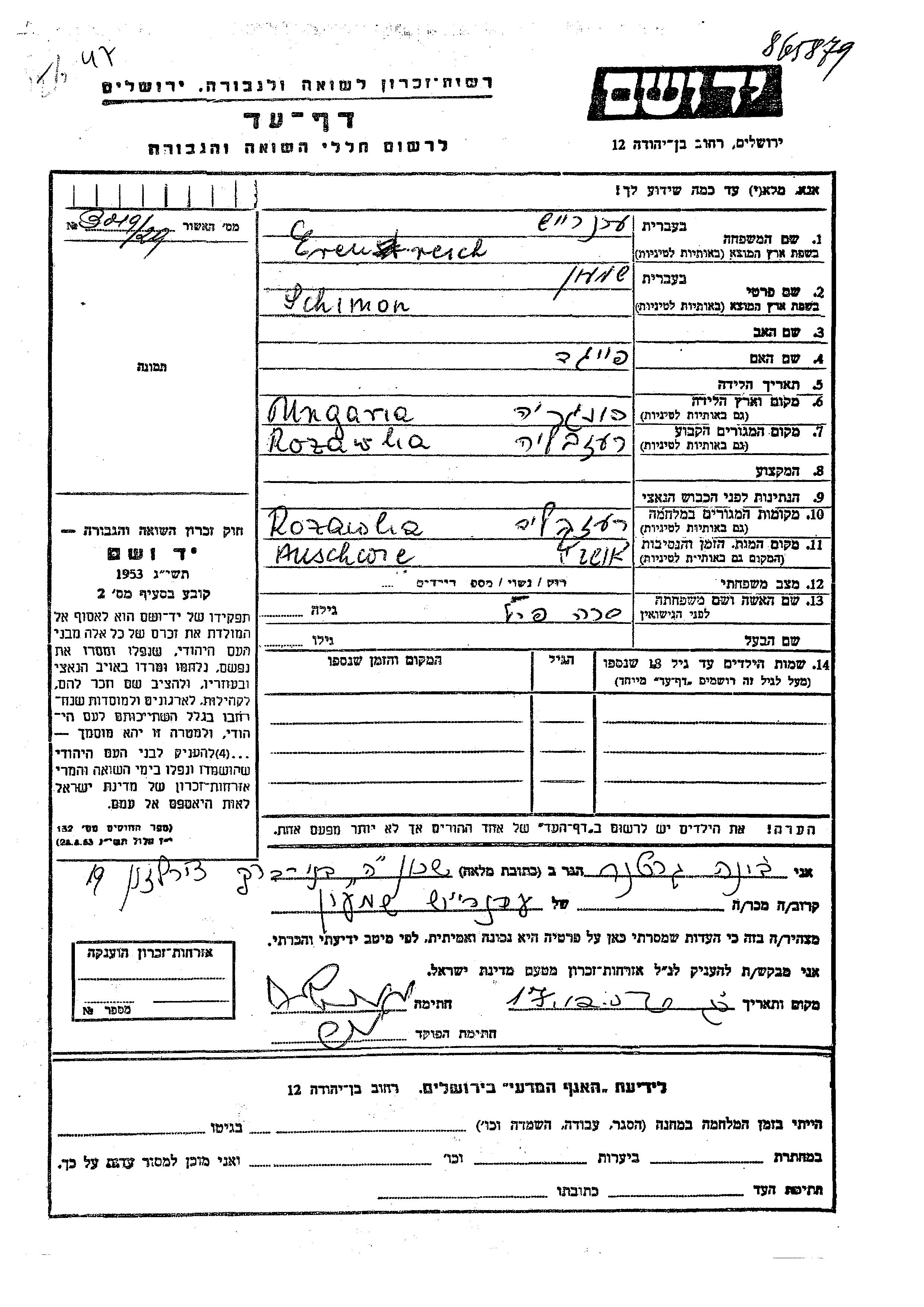 Schimon wurde in der Schoah ermordet. Todesort: Auschwitz, Polen.