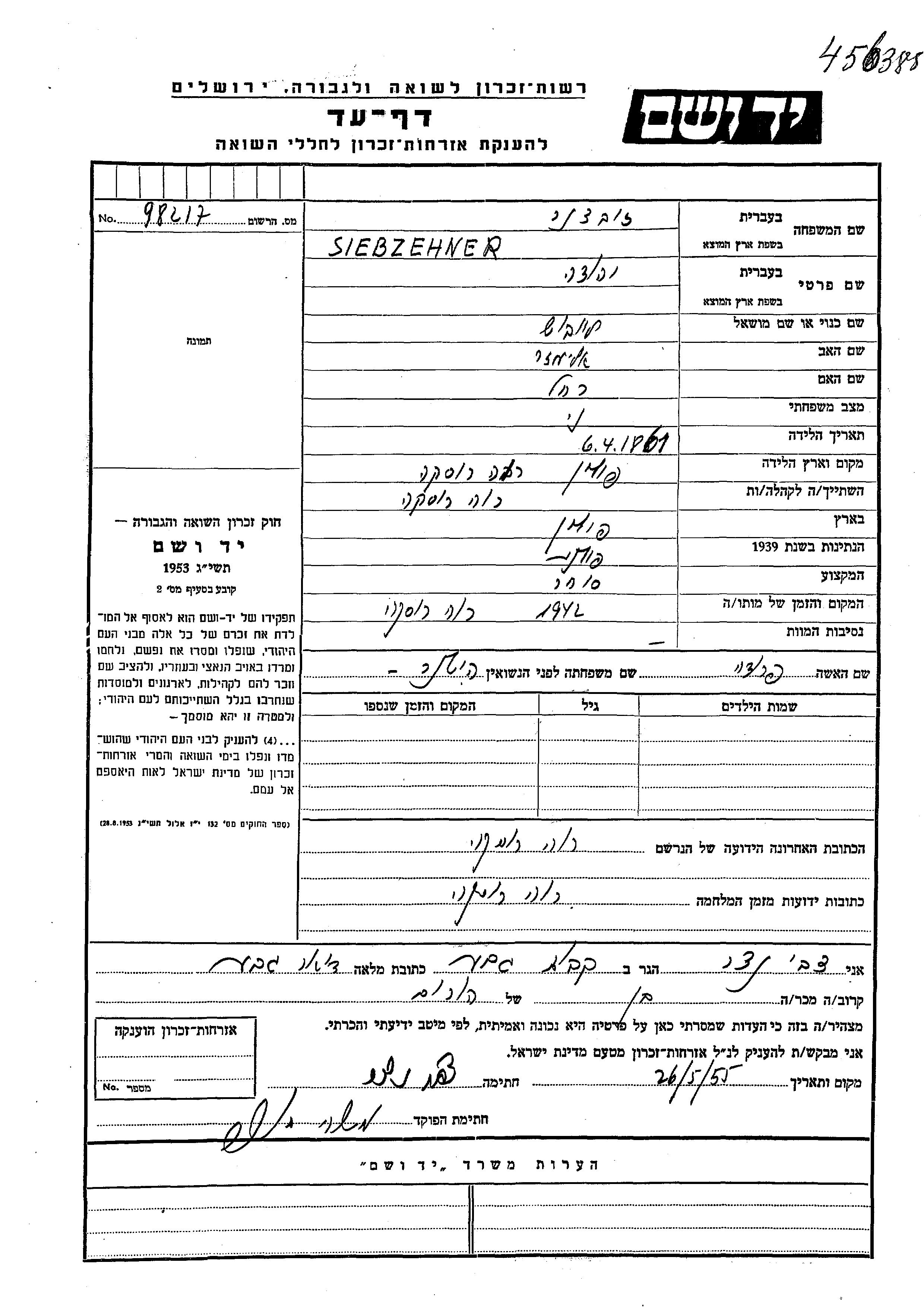 Yehuda Leibush Siebzehner wurde im Jahr 1861 in Rawa Ruska, Polen geboren. Er war der Sohn von Eliezer und Rakhel. Er war Kaufmann/-frau. Vor dem Zweiten Weltkrieg lebte er in Rawa Ruska, Polen. Während des Krieges war er in Rawa Ruska, Polen.