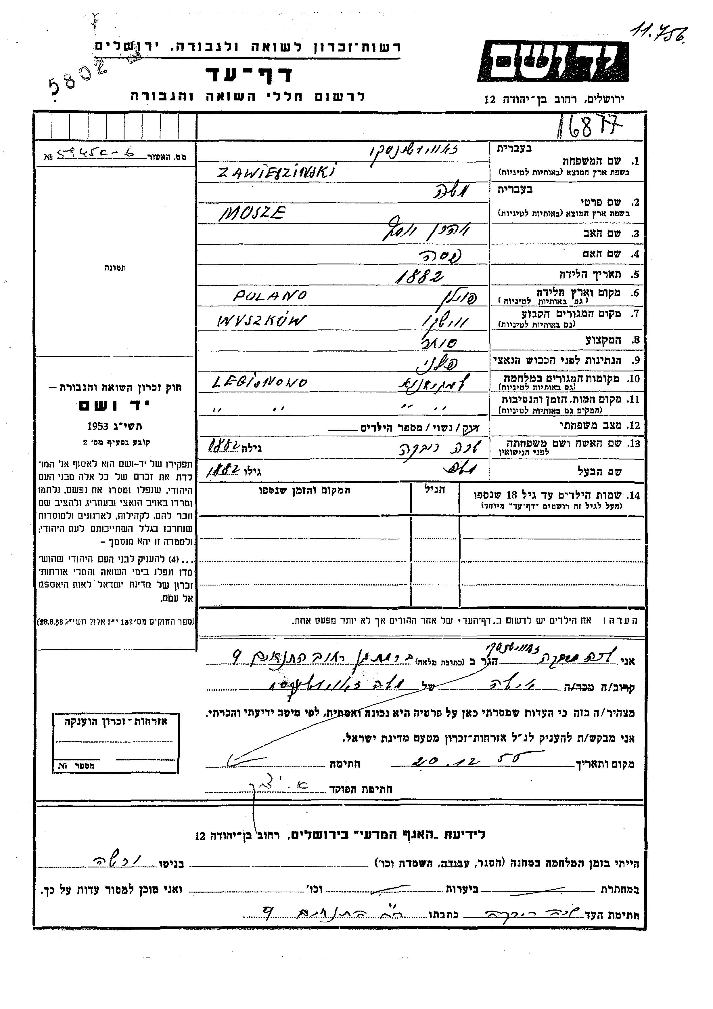 Mosze wurde in der Schoah ermordet. Todesort: Legionowo, Polen.