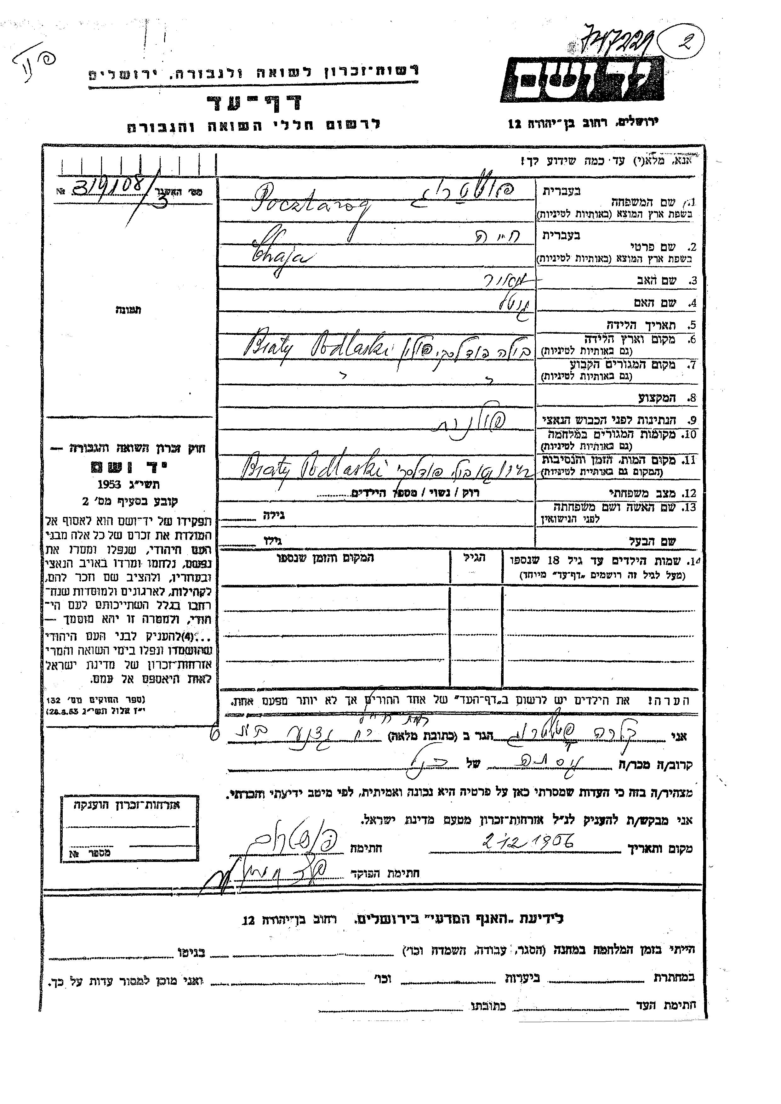 Chaja wurde in der Schoah ermordet. Todesort: Biala Podlaska, Polen im Jahr 1942.